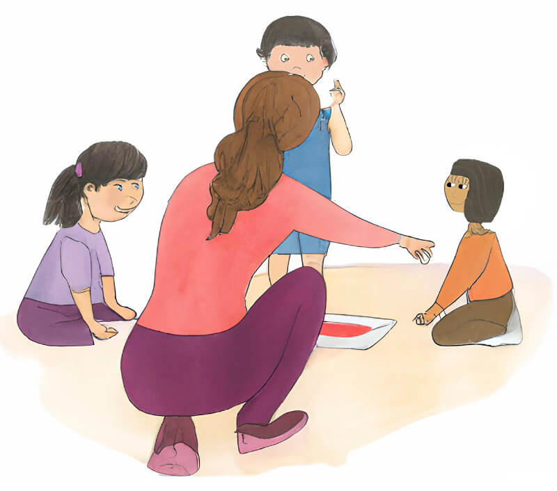 Juegos con un paracaídas: agitarlo, subirlo y bajarlo, meterse debajo, tirarle bolas y evitar que se cuelen por el agujero central, mecerlo al ritmo de la música, etc.