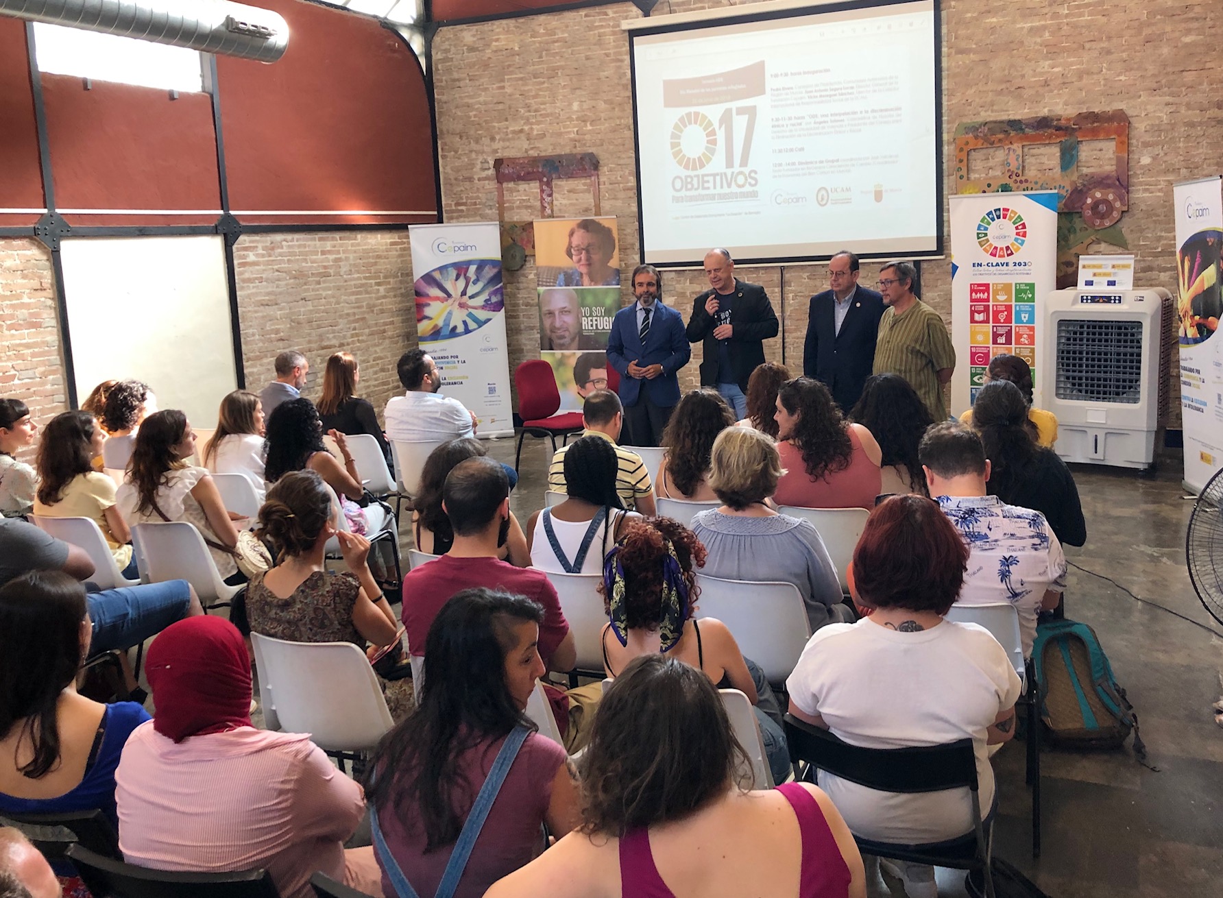 El consejero de Presidencia en funciones, Pedro Rivera, participó hoy con representantes de la Universidad Católica de Murcia (UCAM) y la Fundación CEPAIM en un acto de difusión y concienciación de los Objetivos de Desarrollo Sostenible (ODS) establecidos por la Organización de las Naciones Unidas en su Agenda 2030. enmarcado en la celebración del Día Mundial de los Refugiados, "como plasmación efectiva de uno de esos objetivos, consistente en la creación de alianzas entre administraciones, universidades y organizaciones no gubernamentales para facilitar la consecución de esas metas".