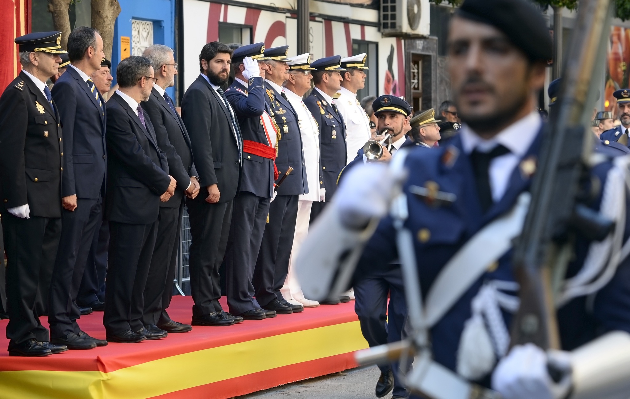 El presidente de la Comunidad, Fernando López Miras, asistió hoy a los actos de homenaje a la Bandera organizados en el municipio de Alcantarilla con motivo del Día de la Fiesta Nacional, que se celebra el próximo 12 de octubre, “una fecha para reafirmar nuestra apuesta por la democracia, el modelo de convivencia común que tan buen resultado ha dado en España y que es garantía de libertad, pluralidad y solidaridad”, destacó.