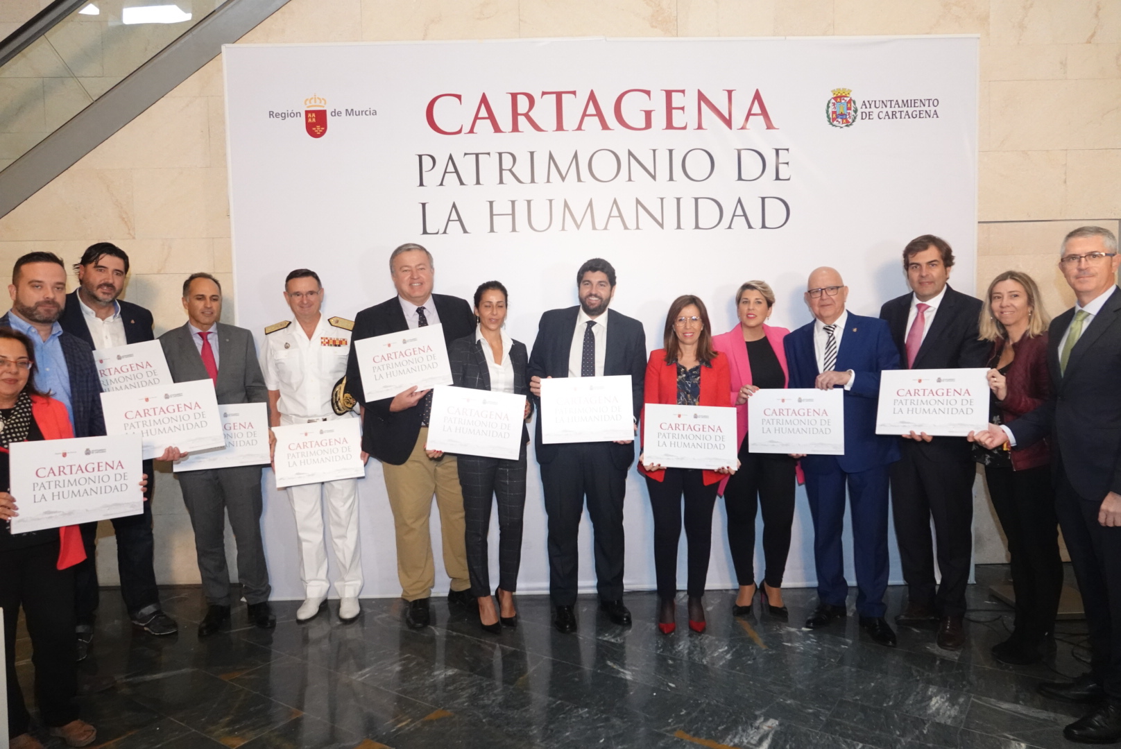 El presidente de la Comunidad, Fernando López Miras, ha presidido el acto de firma del Protocolo de colaboración entre Comunidad Autónoma y Ayuntamiento de Cartagena para promover la declaración de la ciudad como Patrimonio Mundial de la Humanidad por la Unesco
