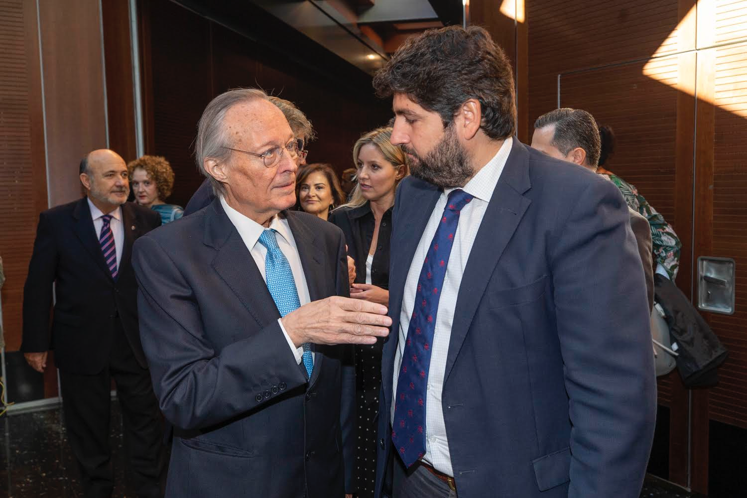 El presidente de la Comunidad, Fernando López Miras, asiste a la conferencia sobre ‘El mundo que nos viene’, impartida por el exministro Josep Piqué con motivo de la celebración del ‘III Día del Economista de la Región de Murcia’.