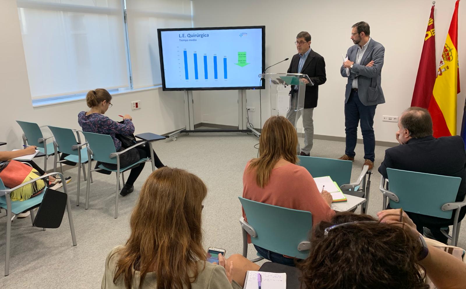 El consejero de Salud, Manuel Villegas, presentó hoy los indicadores de listas de espera junto al gerente del SMS, Asensio López.