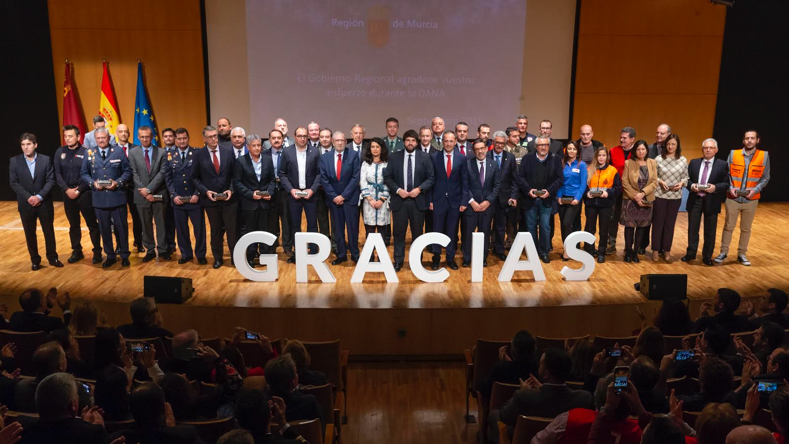 El jefe del Ejecutivo regional, Fernando López Miras, preside el acto de reconocimiento a las personas y entidades que participaron en la gestión de la emergencia durante el episodio de gota fría los días 12 y 13 de septiembre de 2019