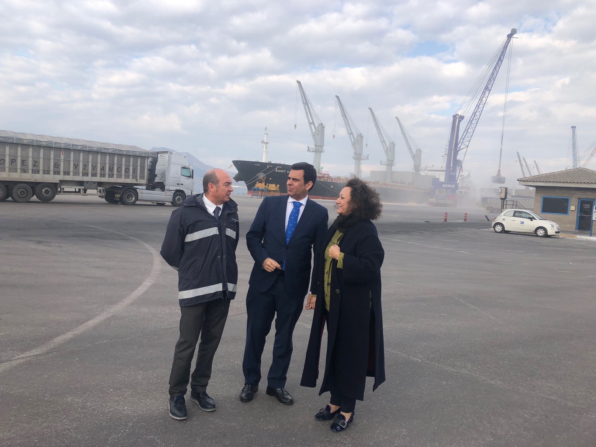El consejero de Fomento e Infraestructuras, José Ramón Díez de Revenga, y la presidenta de la Autoridad Portuaria, Yolanda Muñoz, durante su visita a las instalaciones del Puerto de Cartagena