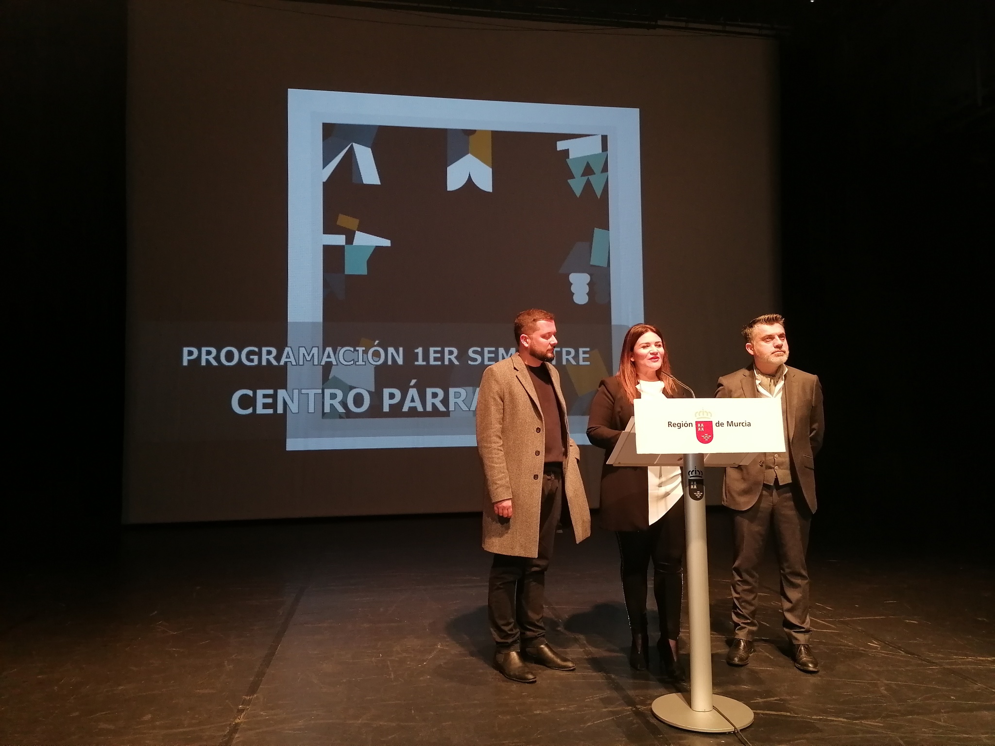 La consejera de Educación y Cultura, Esperanza Moreno, ha presentado la programación del Centro Párraga junto con el director del ICA, Juan Antonio Lorca, y el coordinador del Centro Párraga, Sergio Porlán