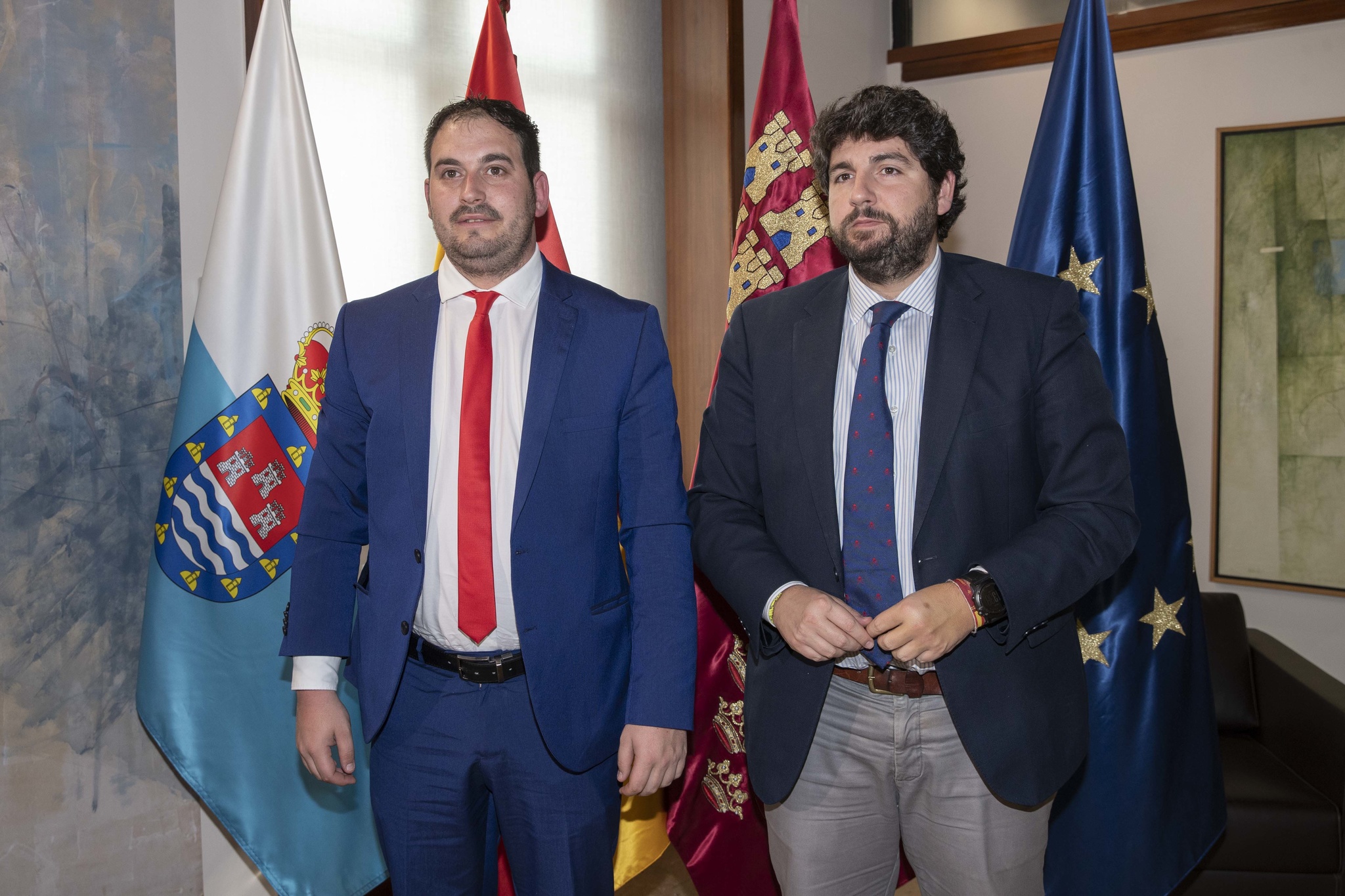 Imagen de la reunión mantenida por el presidente de la Comunidad, Fernando López Miras, y el alcalde de Los Alcázares, Mario Pérez (2)