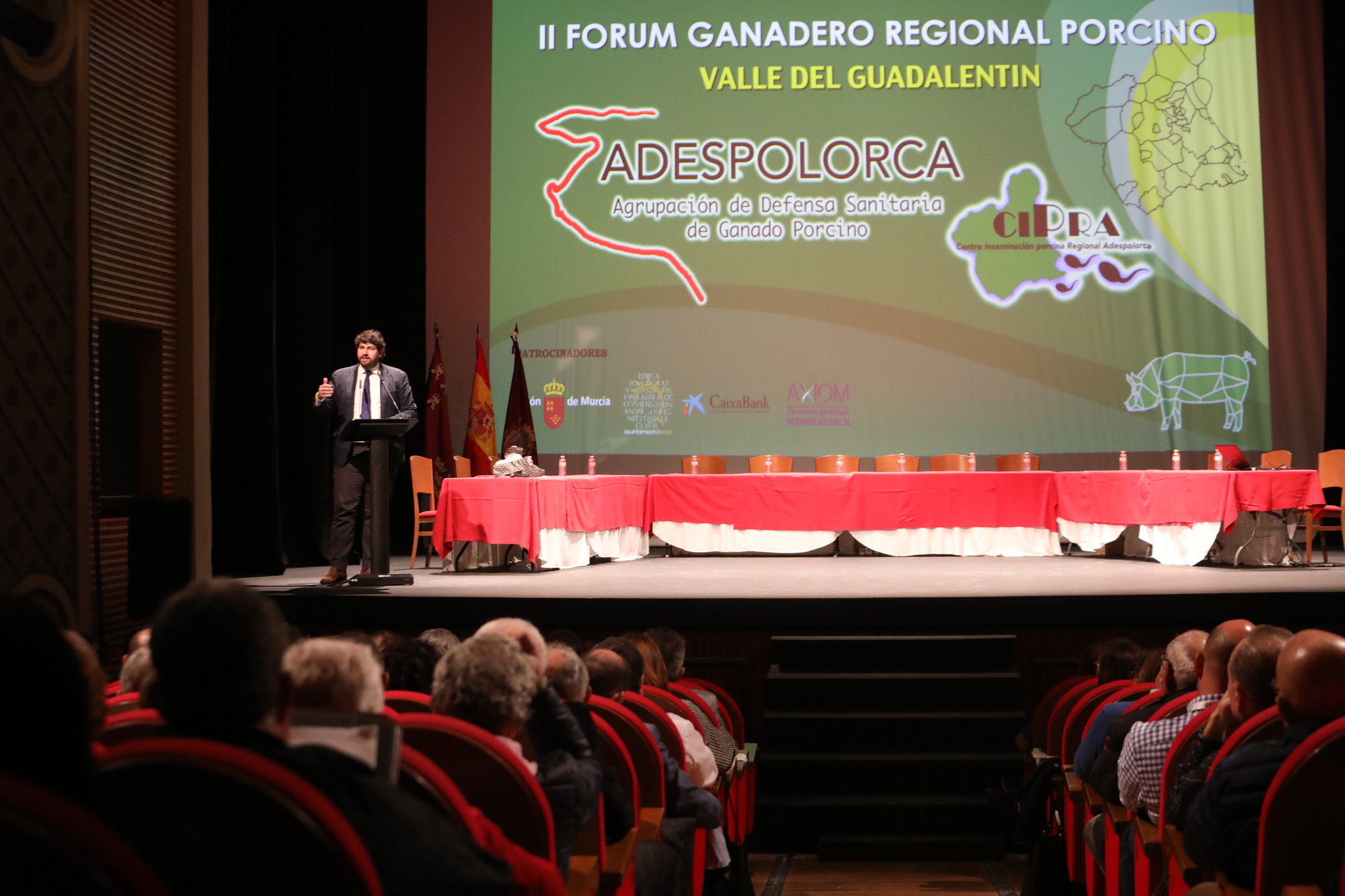 El presidente de la Comunidad, Fernando López Miras, inauguró hoy en Lorca a el ‘II Fórum ganadero de porcino de la Región de Murcia’.