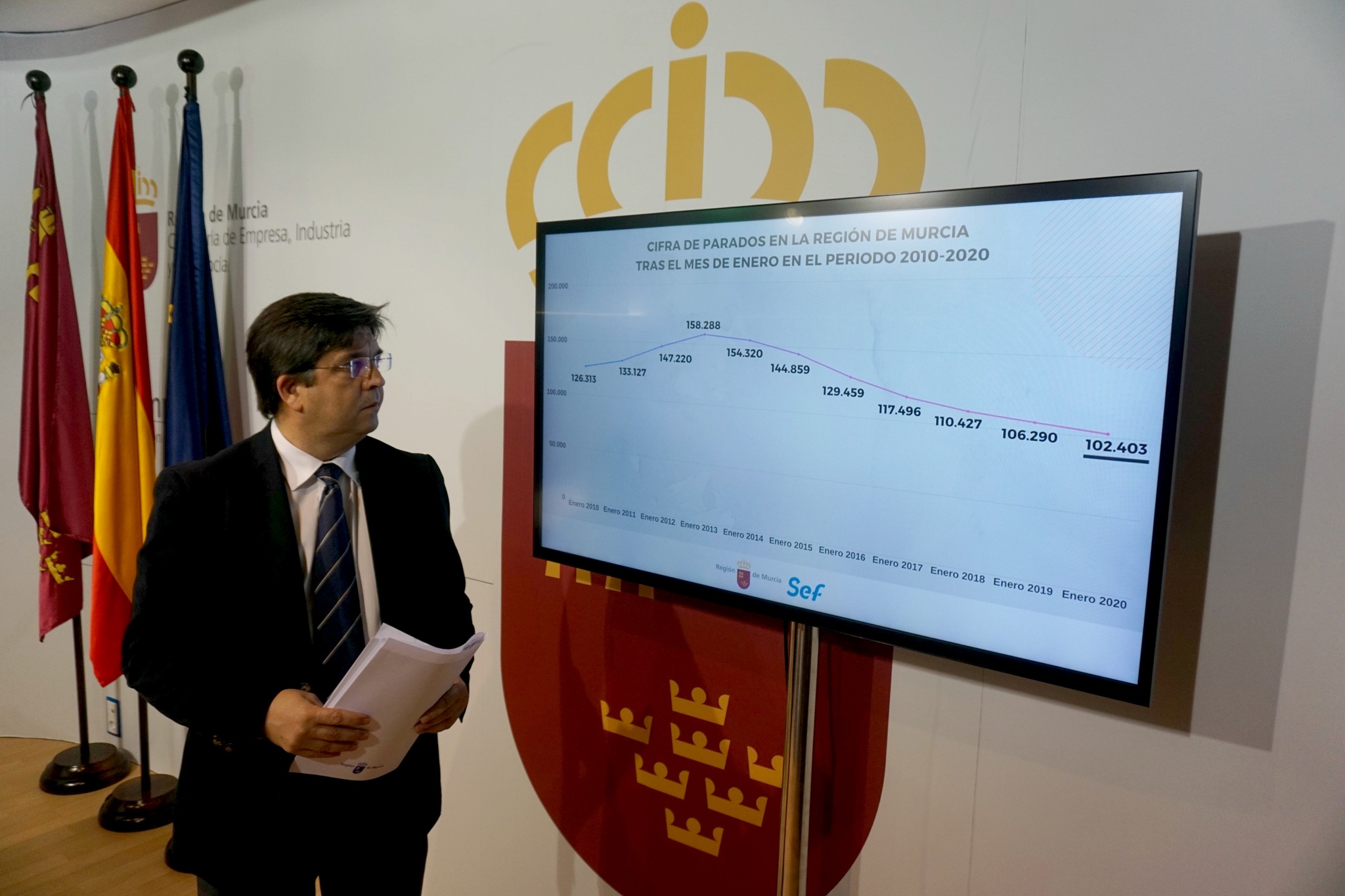 El director general del SEF, Aurelio Morales, valoró hoy en rueda de prensa los datos de paro y afiliación a la Seguridad Social correspondientes al mes de enero.