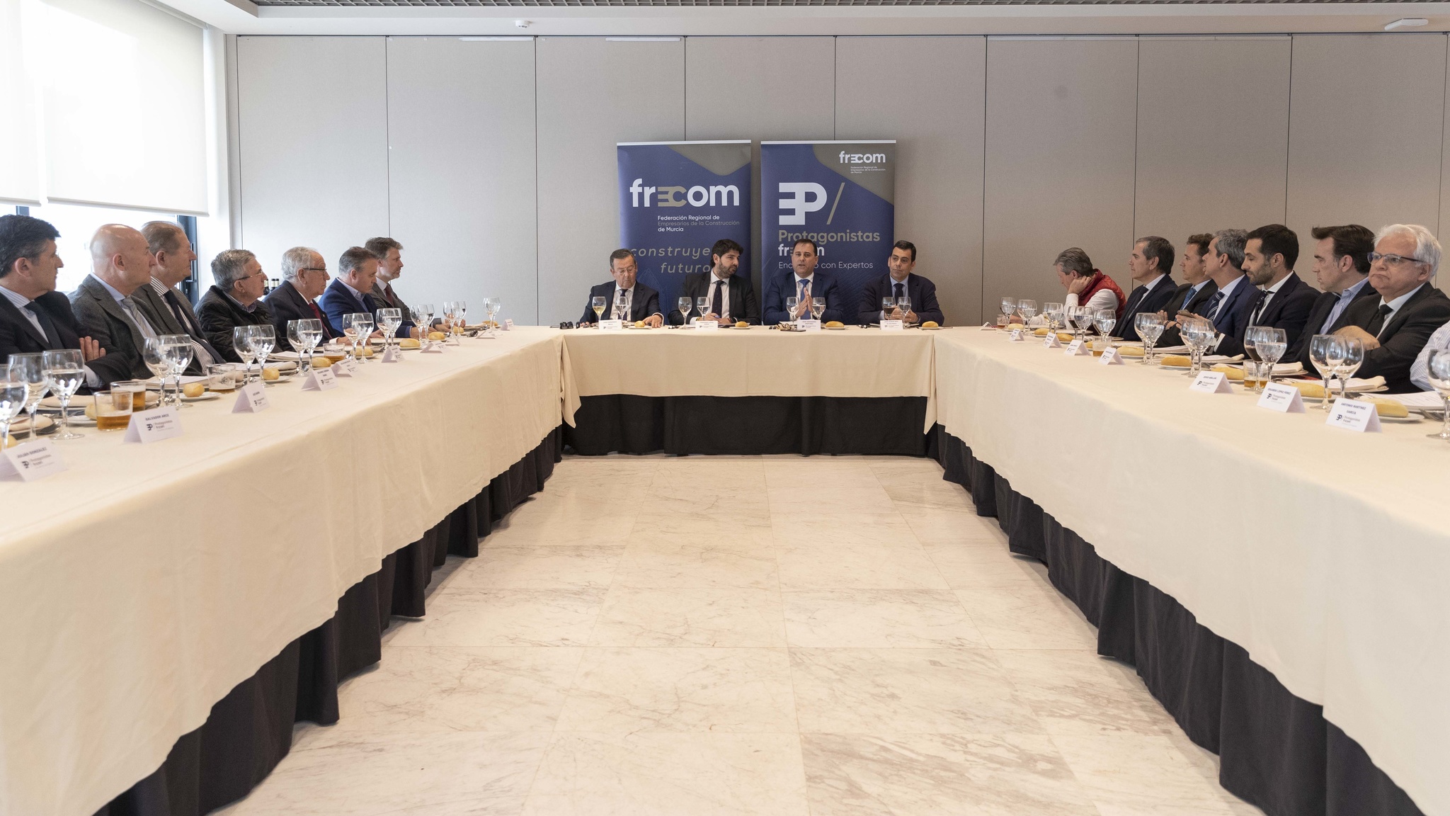 El presidente de la Comunidad, Fernando López Miras, participó hoy en el coloquio ‘Protagonistas Frecom’, organizado por la Federación Regional de Empresarios de la Construcción de Murcia, donde remarcó la disposición del Gobierno regional “en la búsqueda del diálogo con el Ejecutivo central para garantizar la justicia y la igualdad para nuestra Región”.