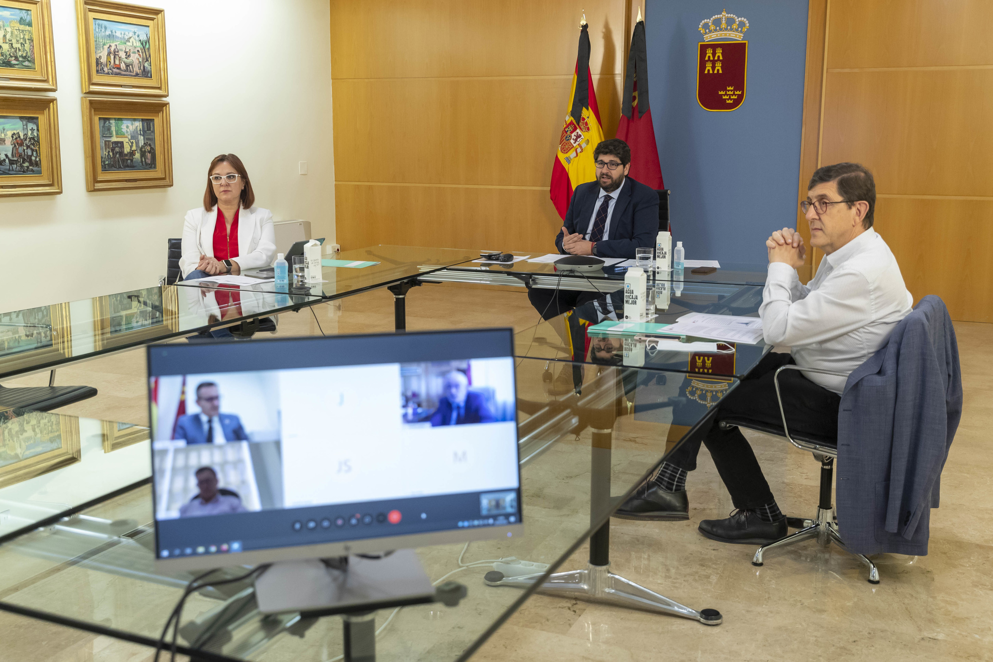 El presidente López Miras se reúne con alcaldes y portavoces para informar de la solicitud de la Región de Murcia de pasar a Fase 3 de la desescalada
