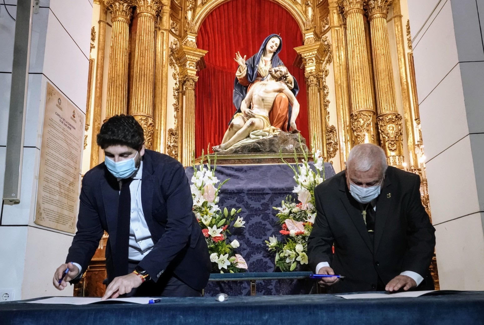 El presidente López Miras entrega la imagen de la Virgen de la Caridad, patrona de Cartagena, al hermano mayor del Santo y Real Hospital de la Caridad, José Vera
