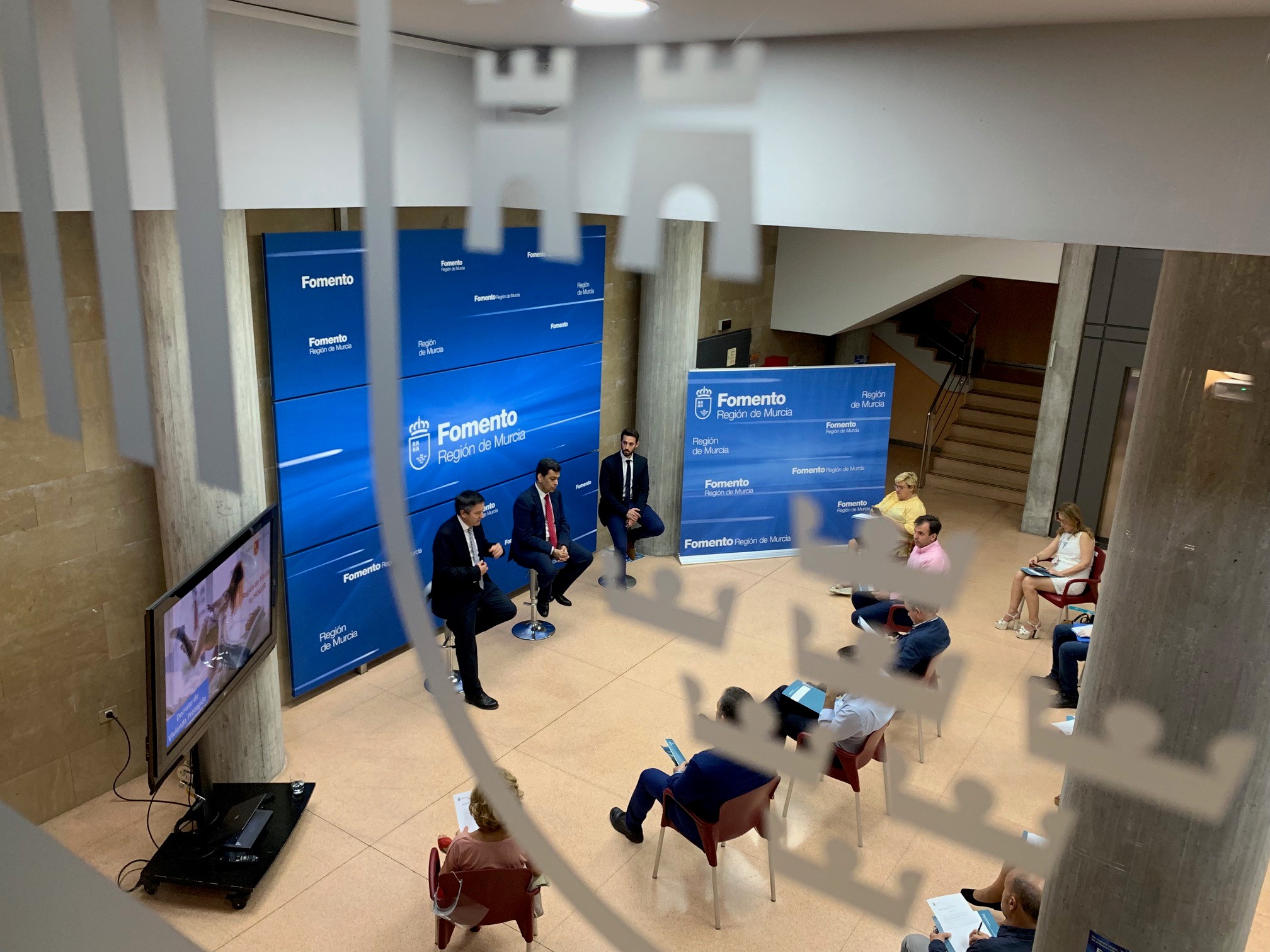 El consejero de Fomento e Infraestructuras, José Ramón Díez de Revenga, acompañado por el secretario general, Enrique Ujaldón y el director de Vivienda, José Francisco Lajara, durante la reunión del Consejo Asesor de Vivienda en la que se ha presentado el nuevo modelo de Vivienda Protegida de la Región de Murcia
