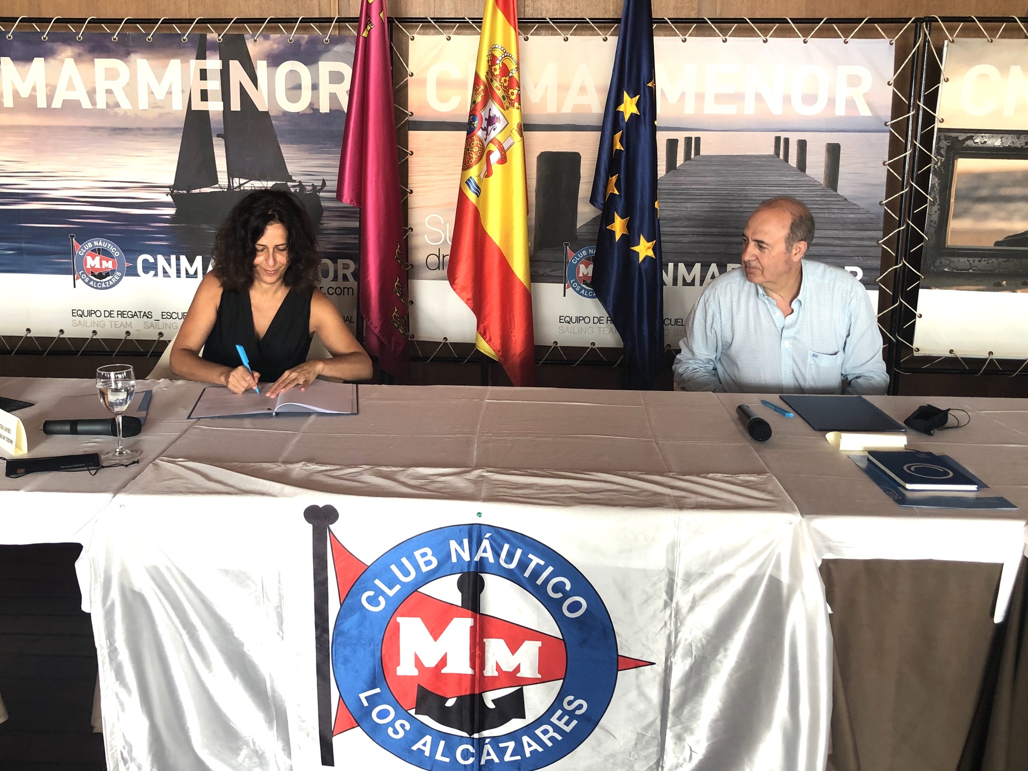 La consejera y el presidente de la Estación Náutica del Mar Menor-Cabo de Palos, Luis Cabello, durante la firma del convenio.