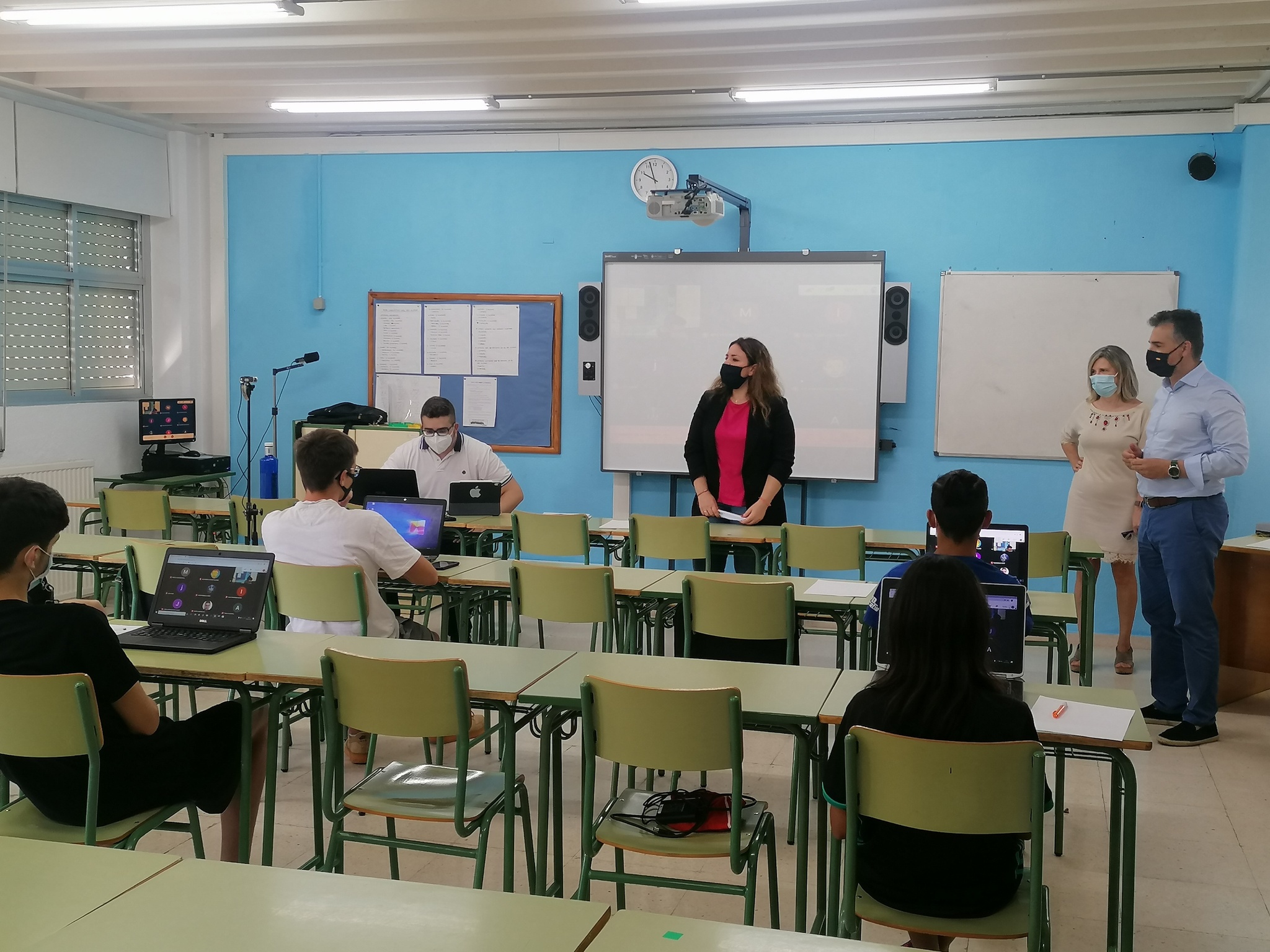 La consejera de Educación y Cultura, Esperanza Moreno, durante su visita a los alumnos que realizan las clases de refuerzo educativo en el