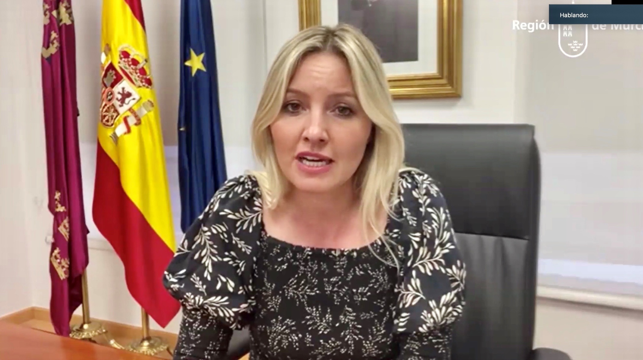 La consejera de Empresa, Industria y Portavocía, Ana Martínez Vidal, durante su intervención por videoconferenecia.