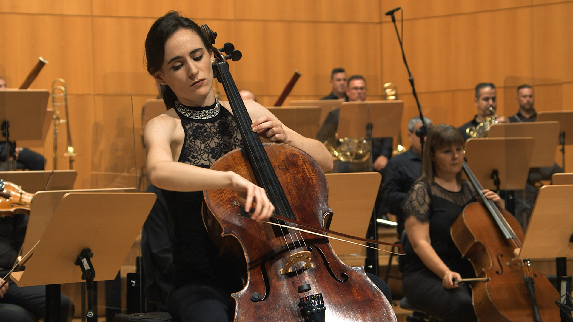 Imagen de la violonchelista murciana Inés de Juan actuando con la Orquesta Sinfónica de la Región de Murcia