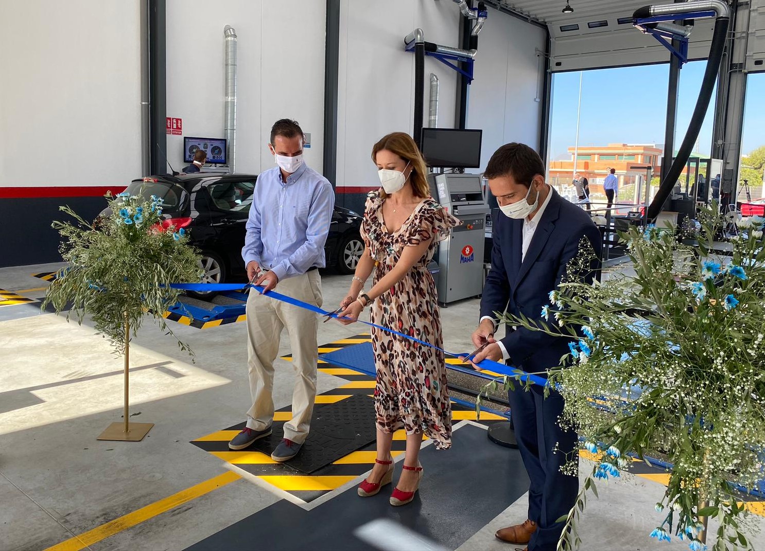 De izquierda a derecha, el director general de Energía y Actividad Industrial, Eduardo Piné, la alcaldesa de Águilas, Mari Carmen Moreno, y el director del área de Movilidad de la empresa TÜV Rheinland en España, Rodrigo Radovan, inauguran las instalaciones de la nueva ITV de Águilas.
