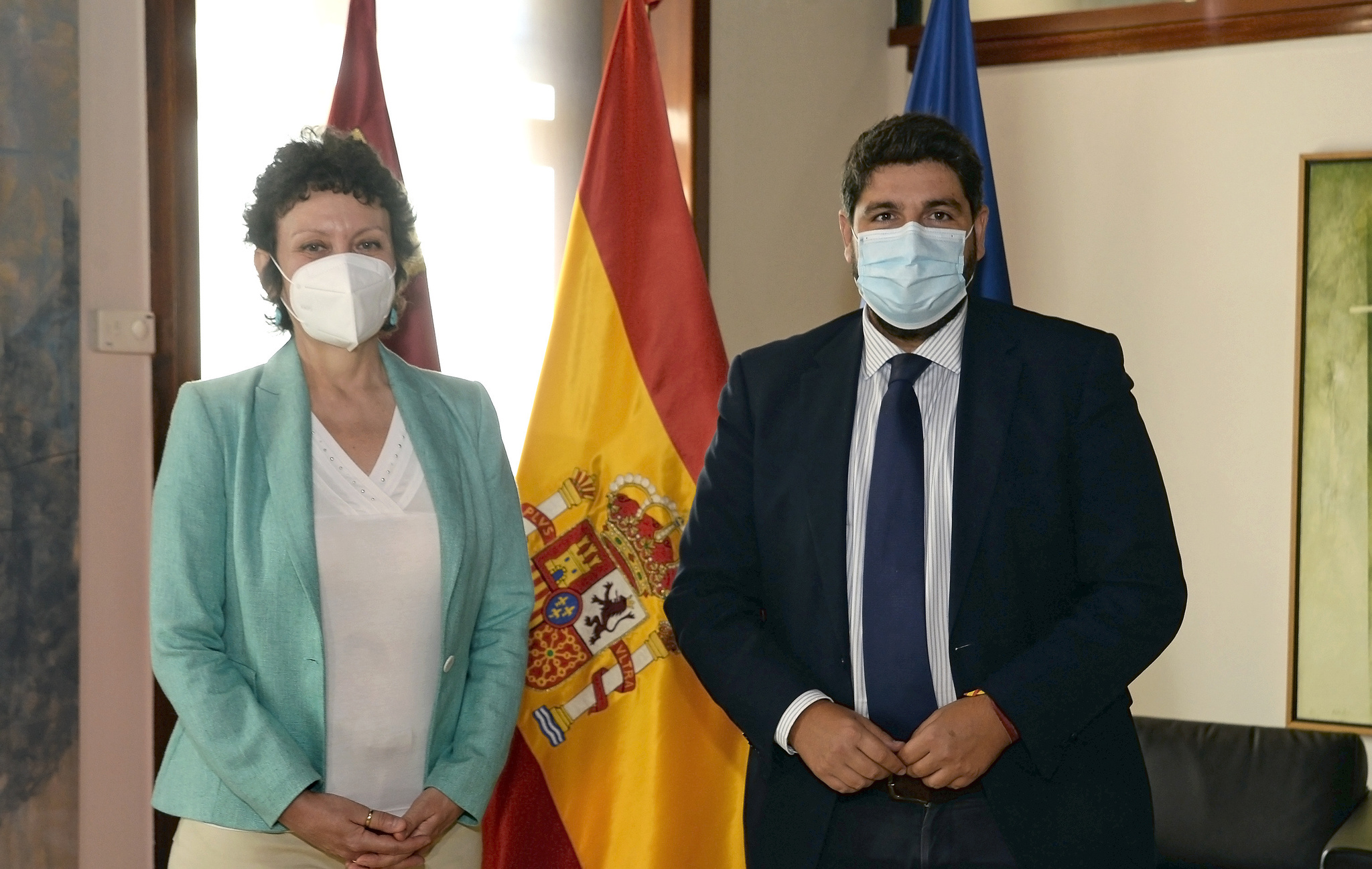 El jefe del Ejecutivo autonómico, Fernando López Miras, ha mantenido un encuentro en el Palacio de San Esteban con la portavoz parlamentaria María Marín