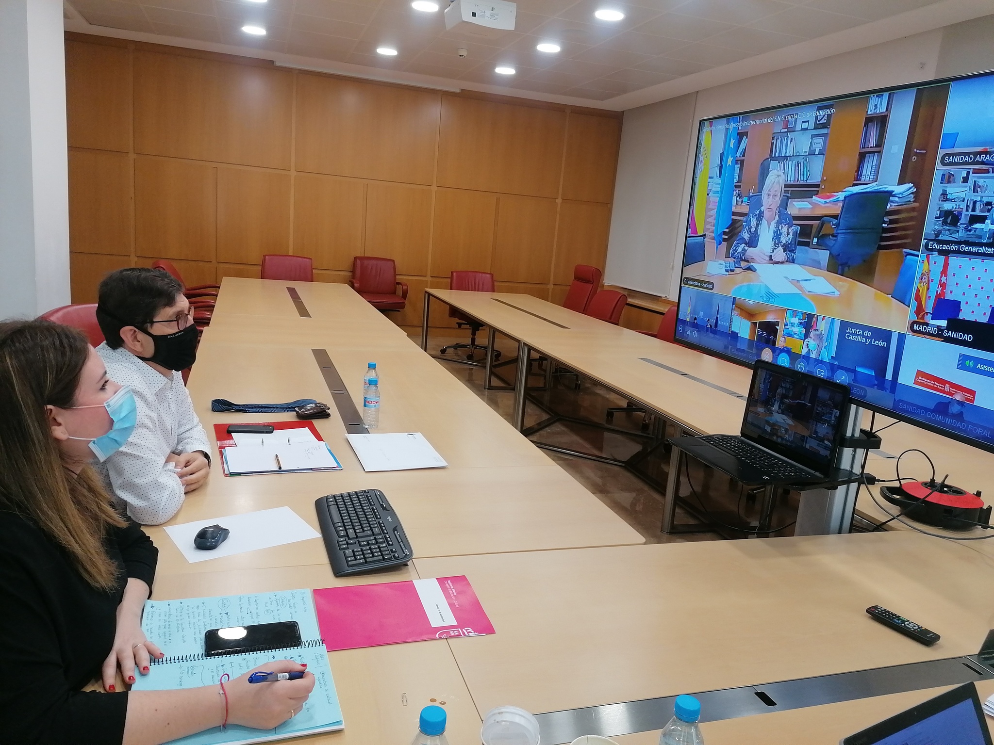 Reunión interterritorial de Educación y Sanidad presidida por los ministros del ramo, y en la que también estuvo presente el consejero de Salud, Manuel Villegas, junto a la consejera de Educación y Cultura, Esperanza Moreno.