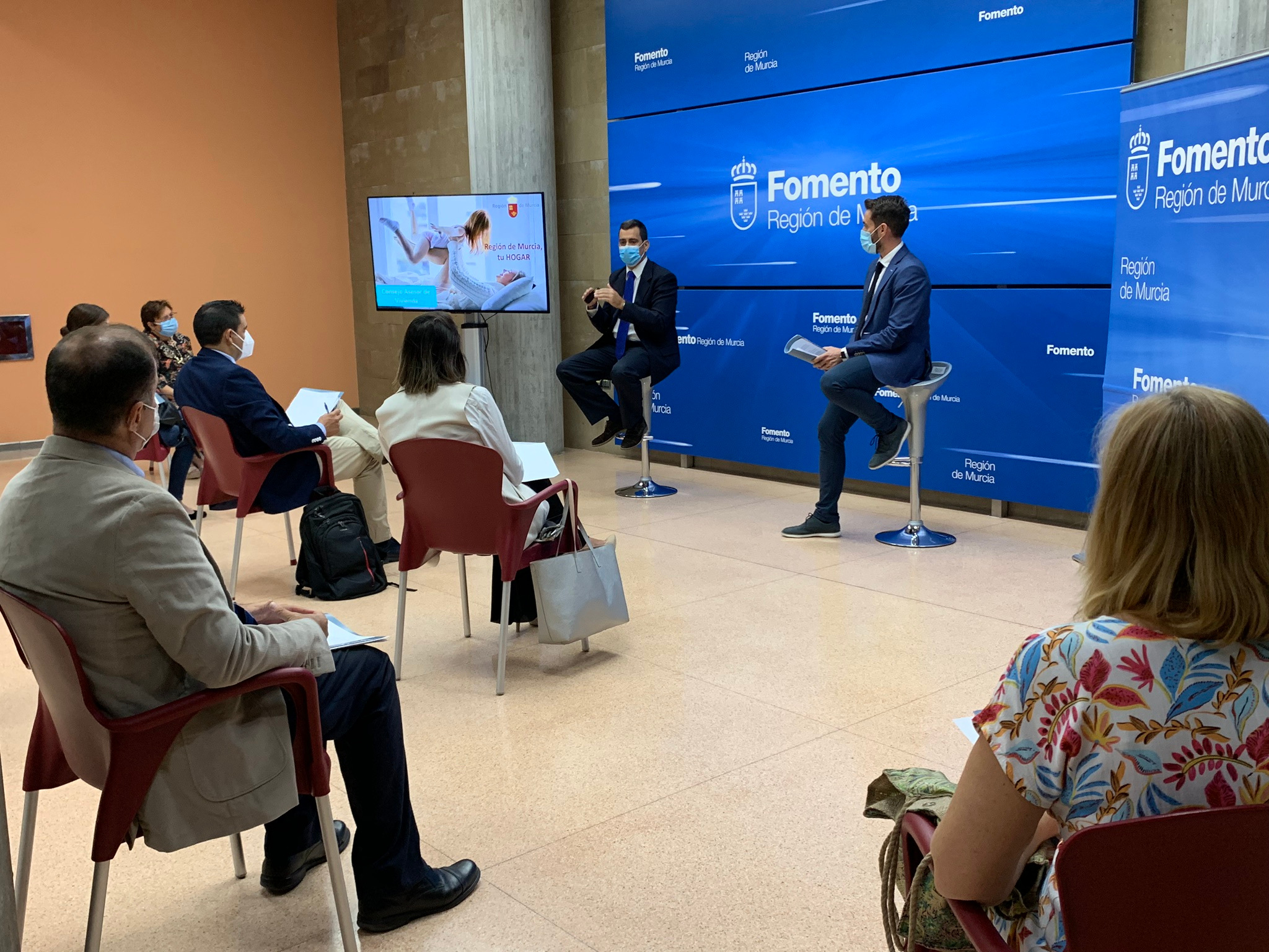 El consejero de Fomento e Infraestructuras, José Ramón Díez de Revenga, acompañado por el director general de Vivienda, José Francisco Lajara, durante la reunión del Consejo Asesor de Vivienda de la Región de Murcia (2)
