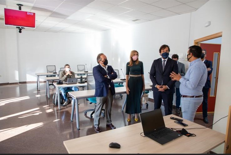 El consejero de Empleo, Investigación y Universidades, Miguel Motas, visitó hoy las instalaciones de ENAE acompañado del presidente de la Fundación Universidad Empresa, Antonio Ballester López; del director de ENAE Business School, Miguel López González de León; y de la directora general del SEF, Marisa López.