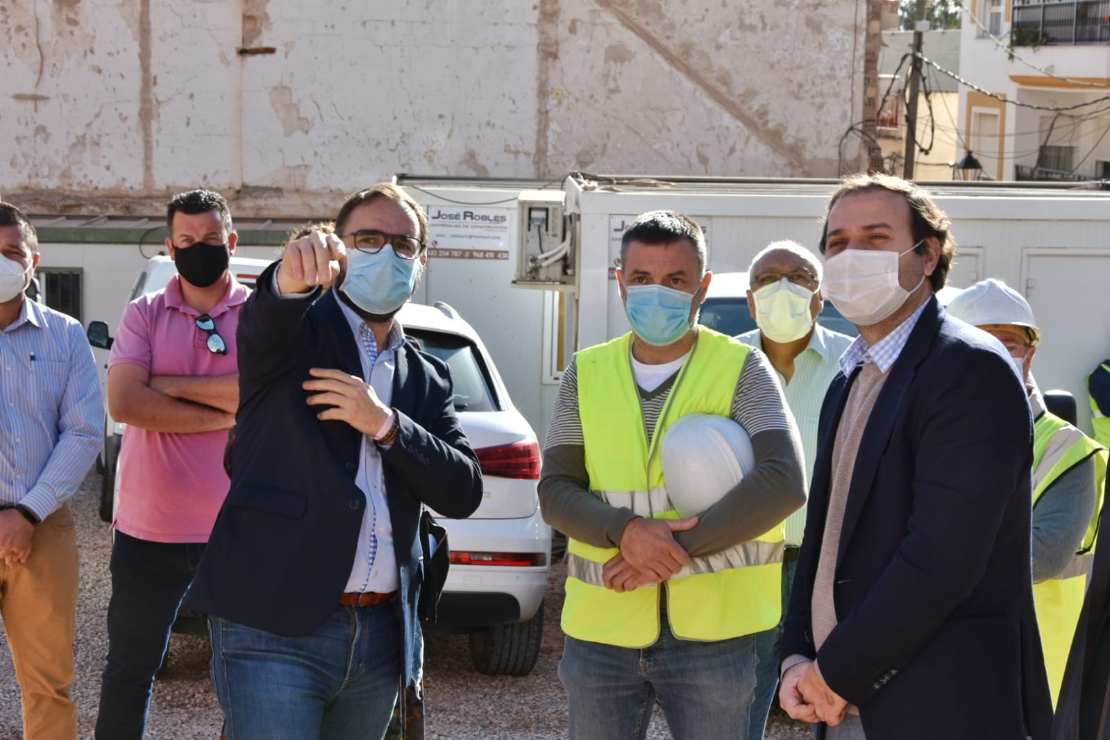 Jaime Pérez Zulueta y el alcalde de Lorca, Diego José Mateos, visitaron las obras de este barrio lorquino, que ejecuta el Ayuntamiento gracias a un convenio con la Comunidad Autónoma al que destina 10 millones de euros procedentes del préstamo que tiene con el Banco Europeo de Inversiones (BEI).