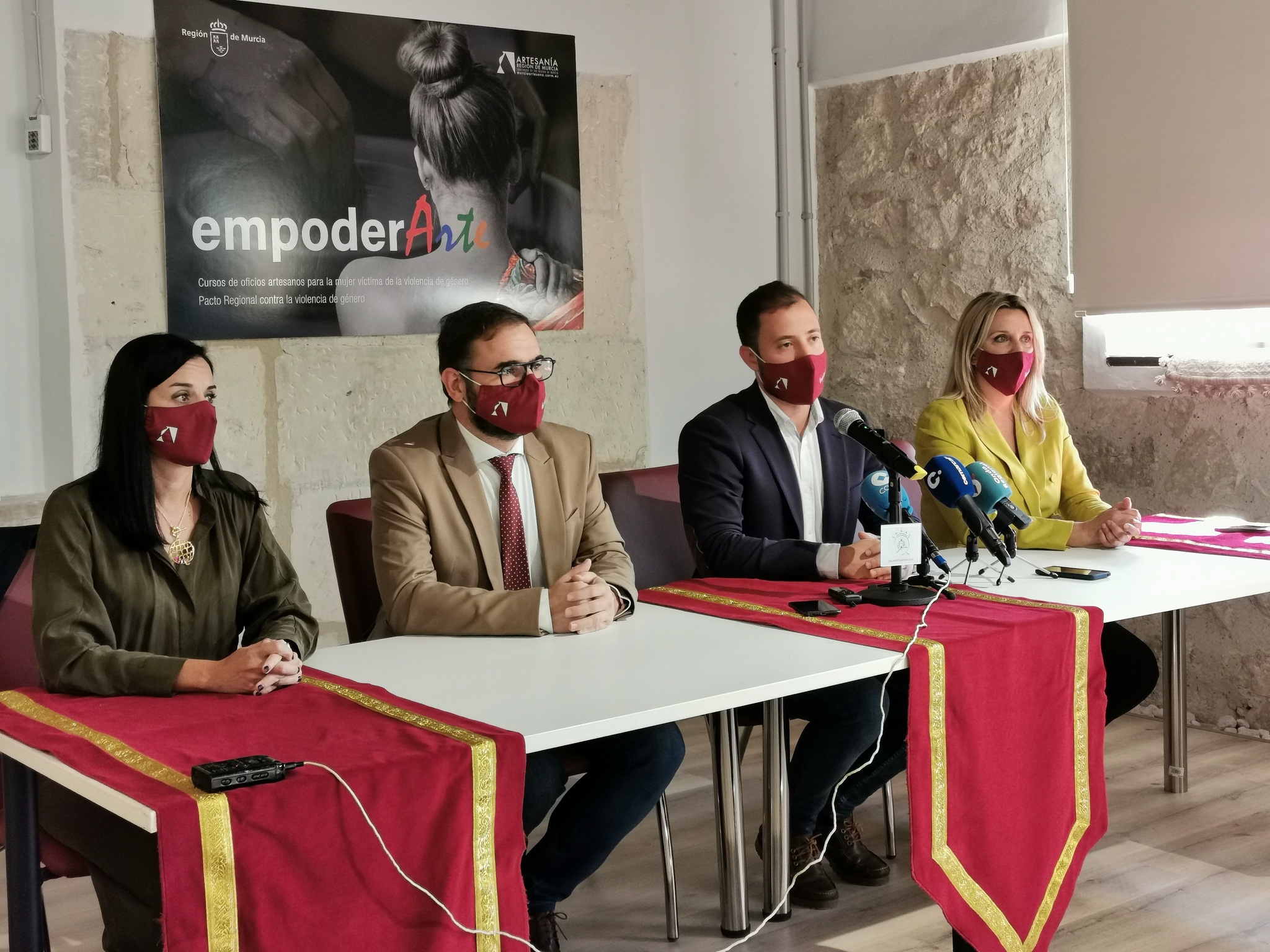 Presentación del proyecto 'Empoderarte', hoy en la Casa del Artesano de Lorca. De izquierda a derecha, la directora general de Mujer y Diversidad de Género, María José García; el alcalde de Lorca, Diego José Mateos; el vicealcalde, Francisco Morales; y la directora general de Consumo y Artesanía, Carolina Espinosa.