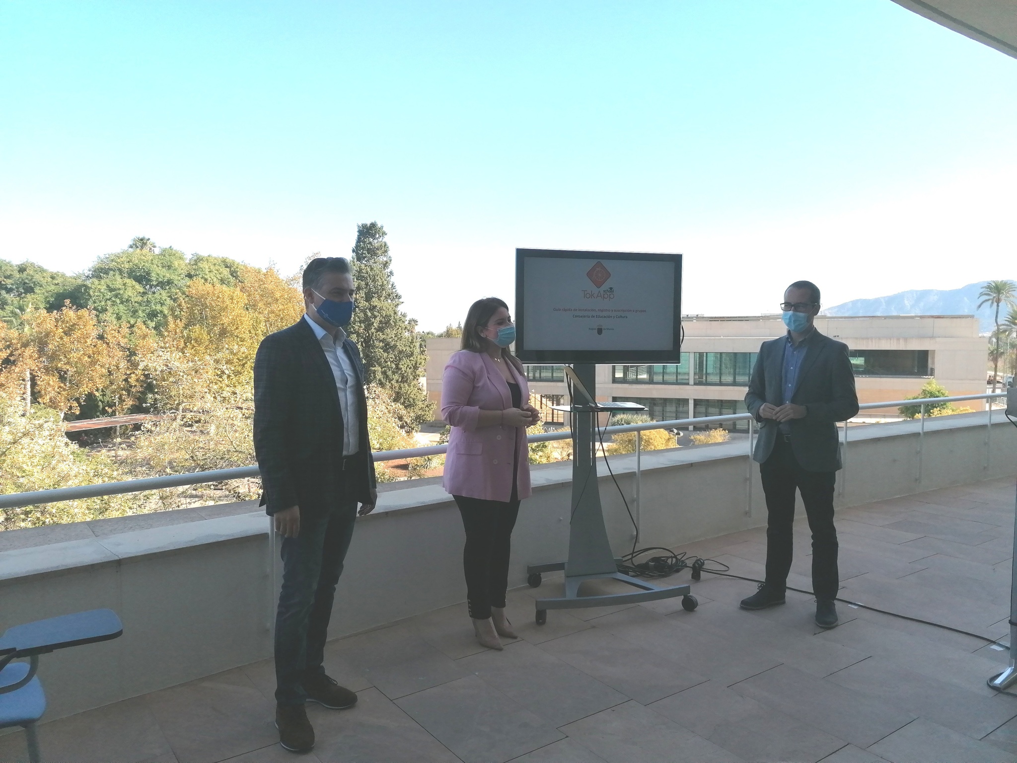 La consejera de Educación y Cultura, Esperanza Moreno, ha presentado junto con el director general de Evaluación Educativa y Formación Profesional, Sergio López, y el director general de Informática Corporativa, Javier Martínez Gilabert, una nueva herramienta de comunicación con familias y docentes