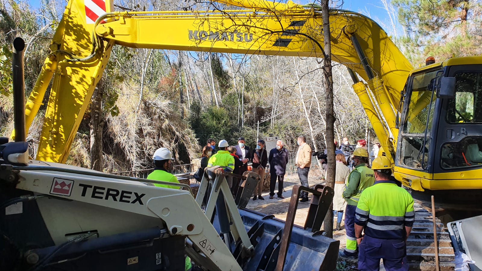 El consejero Antonio Luengo, junto a representantes municipales y técnicos, durante la explicación de las obra de reparación de la terraza fluvial del Santuario de la Esperanza de Calasparra