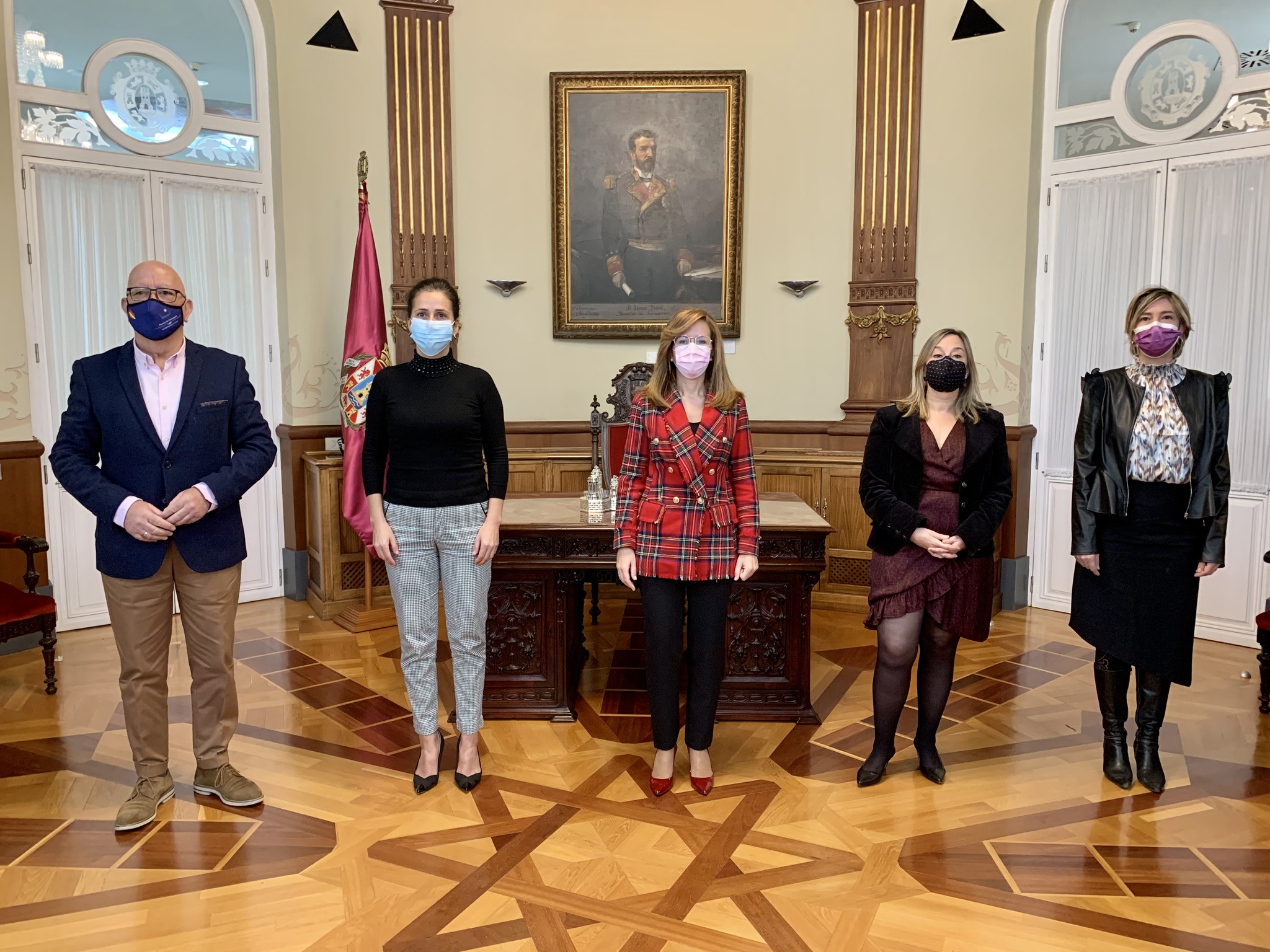 La consejera Cristina Sánchez junto a la alcaldesa Ana Belén Castejón, el concejal de Turismo, Manuel Padín (1i), la directora general de Competitividad y Calidad Turísticas, Esther Tenza (2d), y la concejal delegada de Turismo, Cristina Pérez (1d), tras la firma de adhesión de Cartagena al Sicted