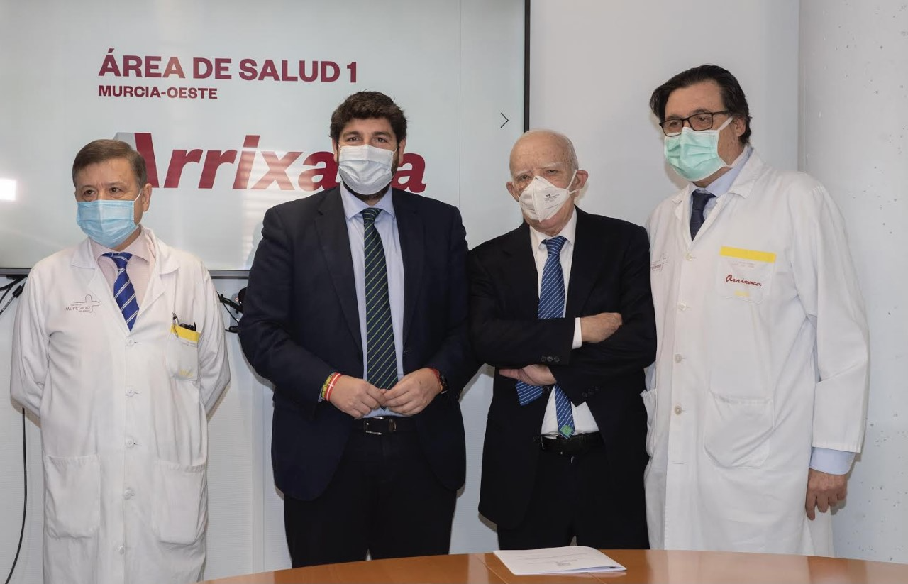 El presidente de la Comunidad, Fernando López Miras, se reunió hoy en el Hospital Clínico Universitario Virgen de la Arrixaca con el doctor Ricardo Robles, que sustituirá a Pablo Ramírez al frente de la Coordinación Regional de Trasplantes.