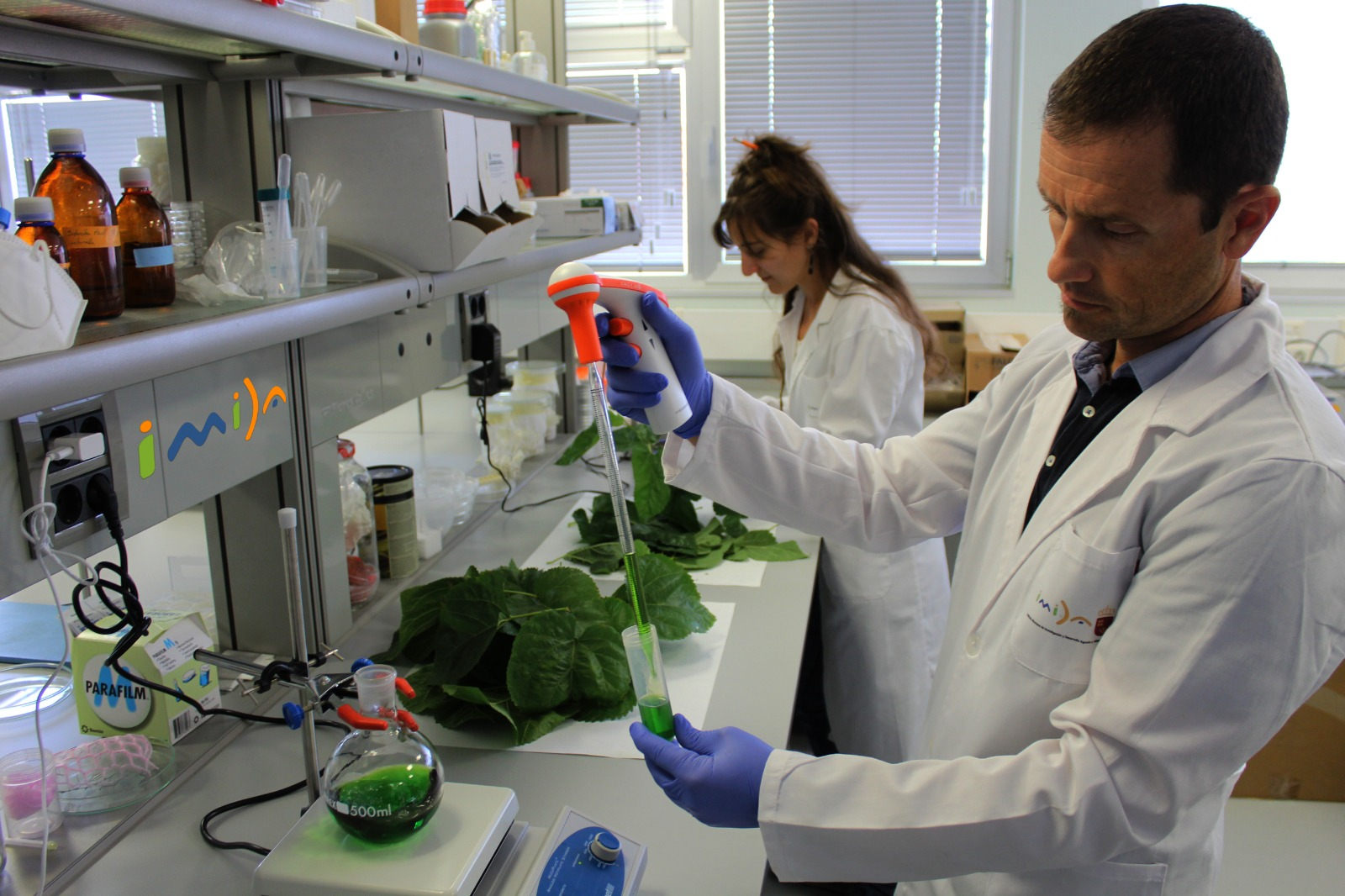 Investigadores del Instituto Murciano de Investigación y Desarrollo Agrario y Alimentario (IMIDA) durante las labores de trabajo en laboratorio con hojas de morera