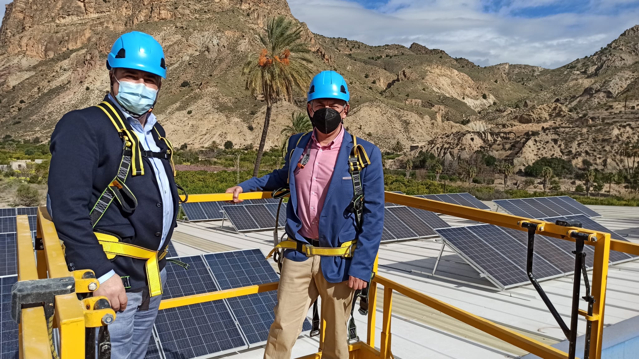 El director general de Administración Local, Francisco Abril, y el alcalde de Ojós, José Emilio Palazón, inauguraron hoy una nueva instalación de paneles solares fotovoltaicos en la cubierta del pabellón polideportivo de esta localidad, que permitirá al Ayuntamiento un significativo ahorro en la factura de consumo, así como una reducción de la demanda energética de la red de distribución general.