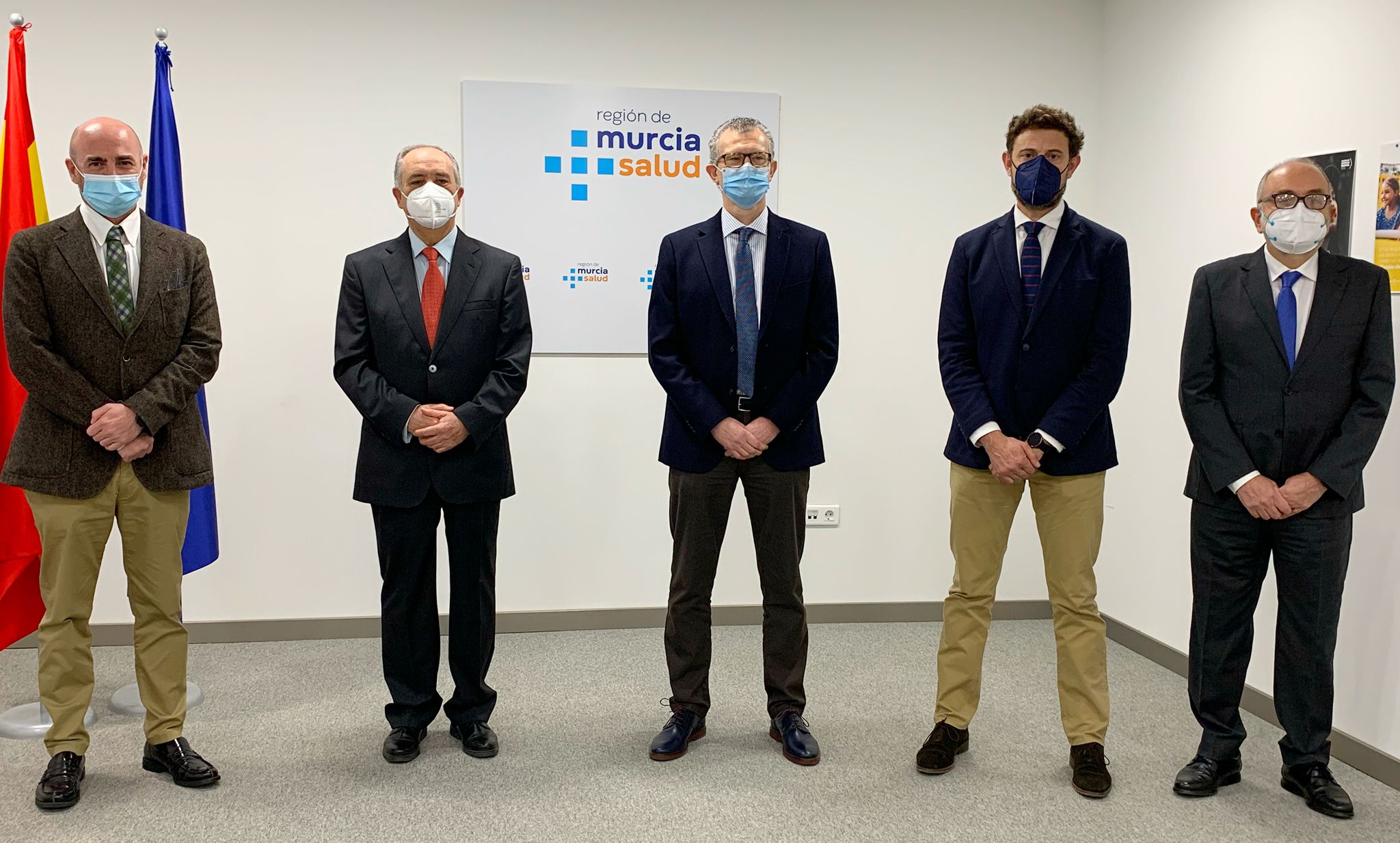 Esta mañana tomaron posesión de su cargo el gerente del Servicio Murciano de Salud, Francisco José Ponce (1i), el director general de Salud Pública y Adicciones, José Jesús Guillén (1d) y el director general de Planificación, Investigación, Farmacia y Atención al Ciudadano, Jesús Cañavate (2i), en un acto presidido por el consejero de Salud, Juan José Pedreño (c) y en el que participó el secretario general de la Consejería de salud, Andrés Torrente (2d).