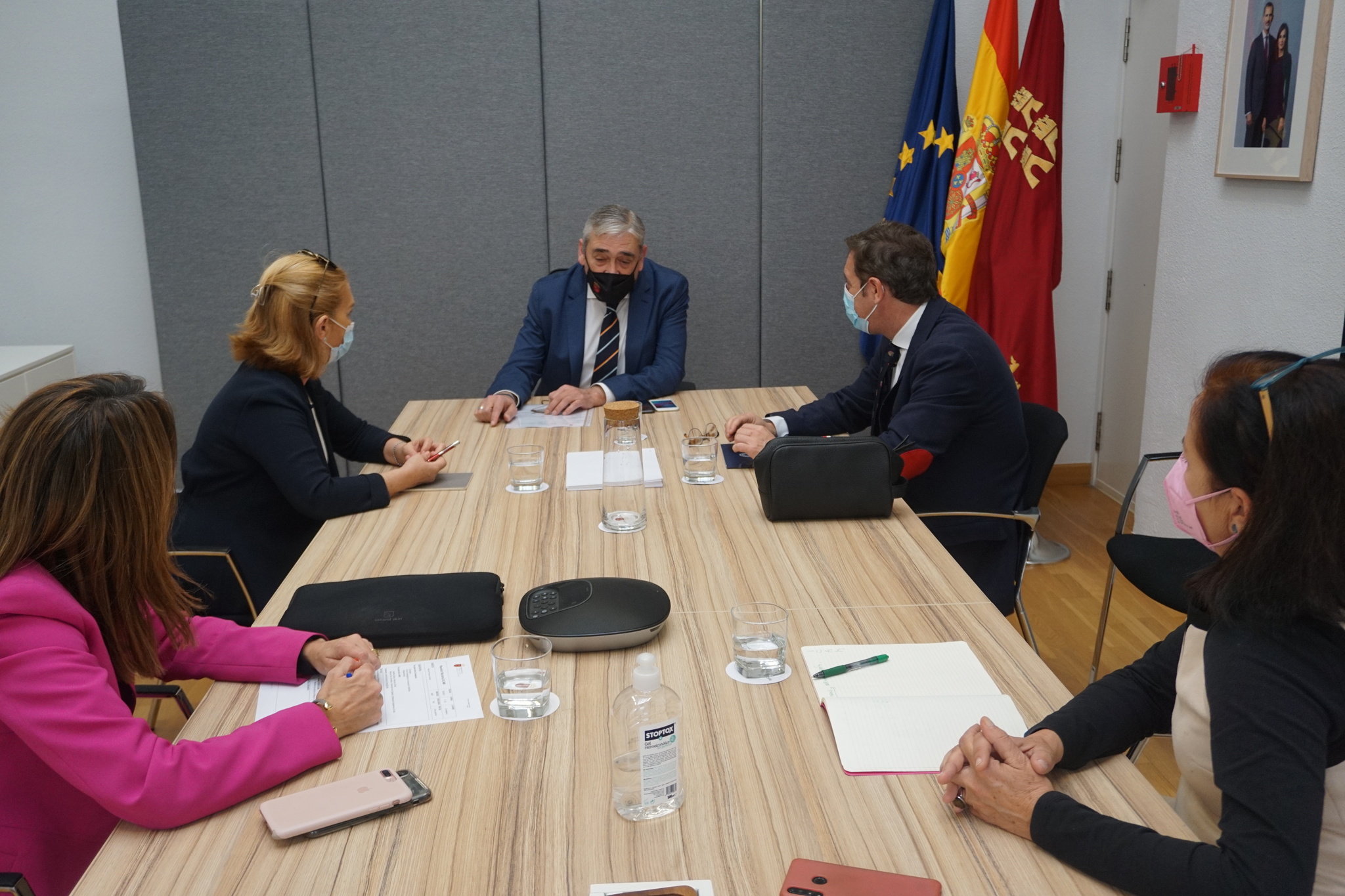 El consejero de Empleo, Investigación y Universidades, Francisco Álvarez, se reunió hoy con la rectora de la UCAM, Josefina García Lozano, en su ronda de contactos con los principales responsables de las universidades de la Región