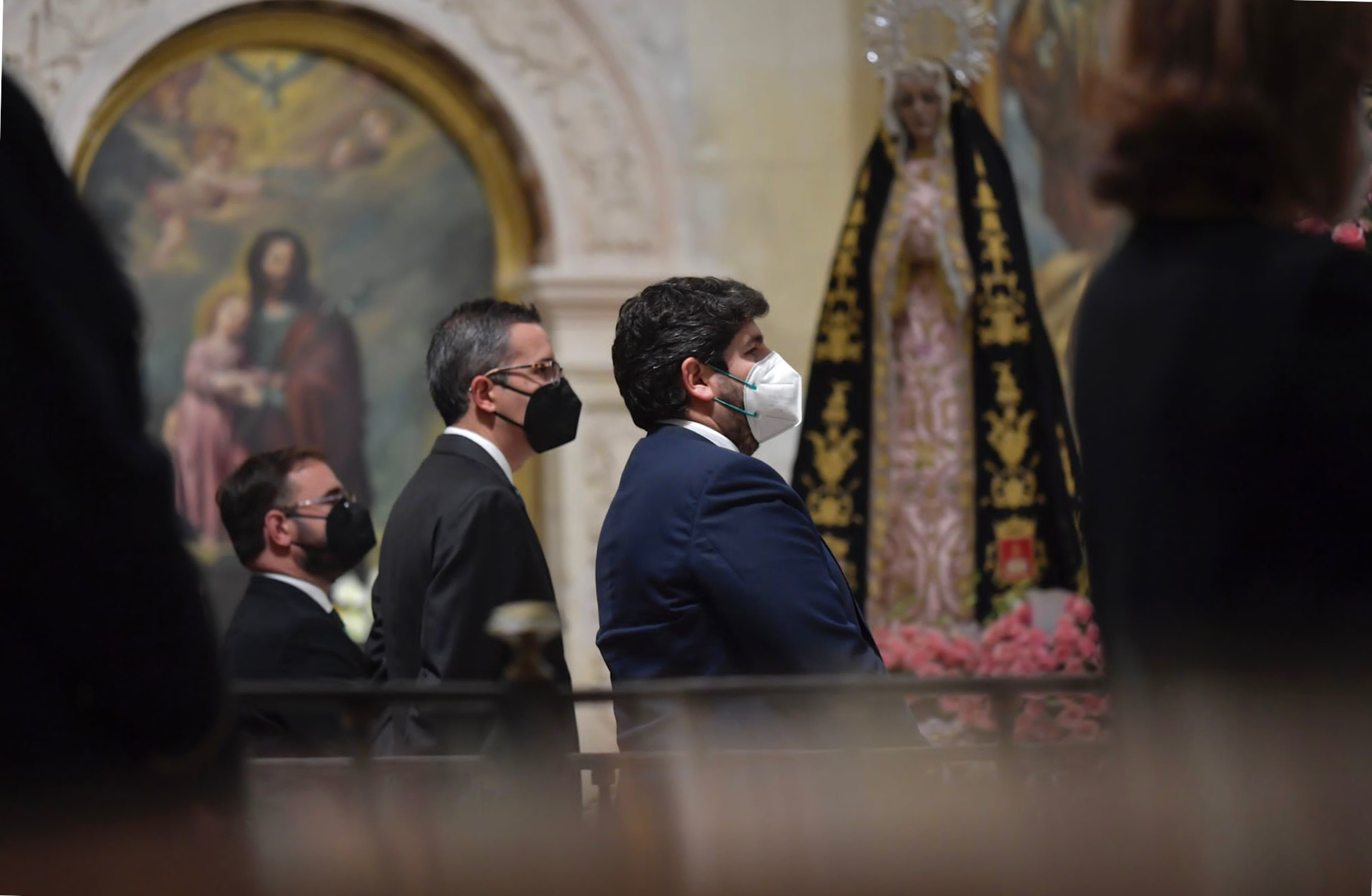 El presidente de la Comunidad, Fernando López Miras, asistió anoche en Lorca a la misa en honor a la Virgen de la Soledad, titular de la Hermandad de la Curia, Paso Negro (1)