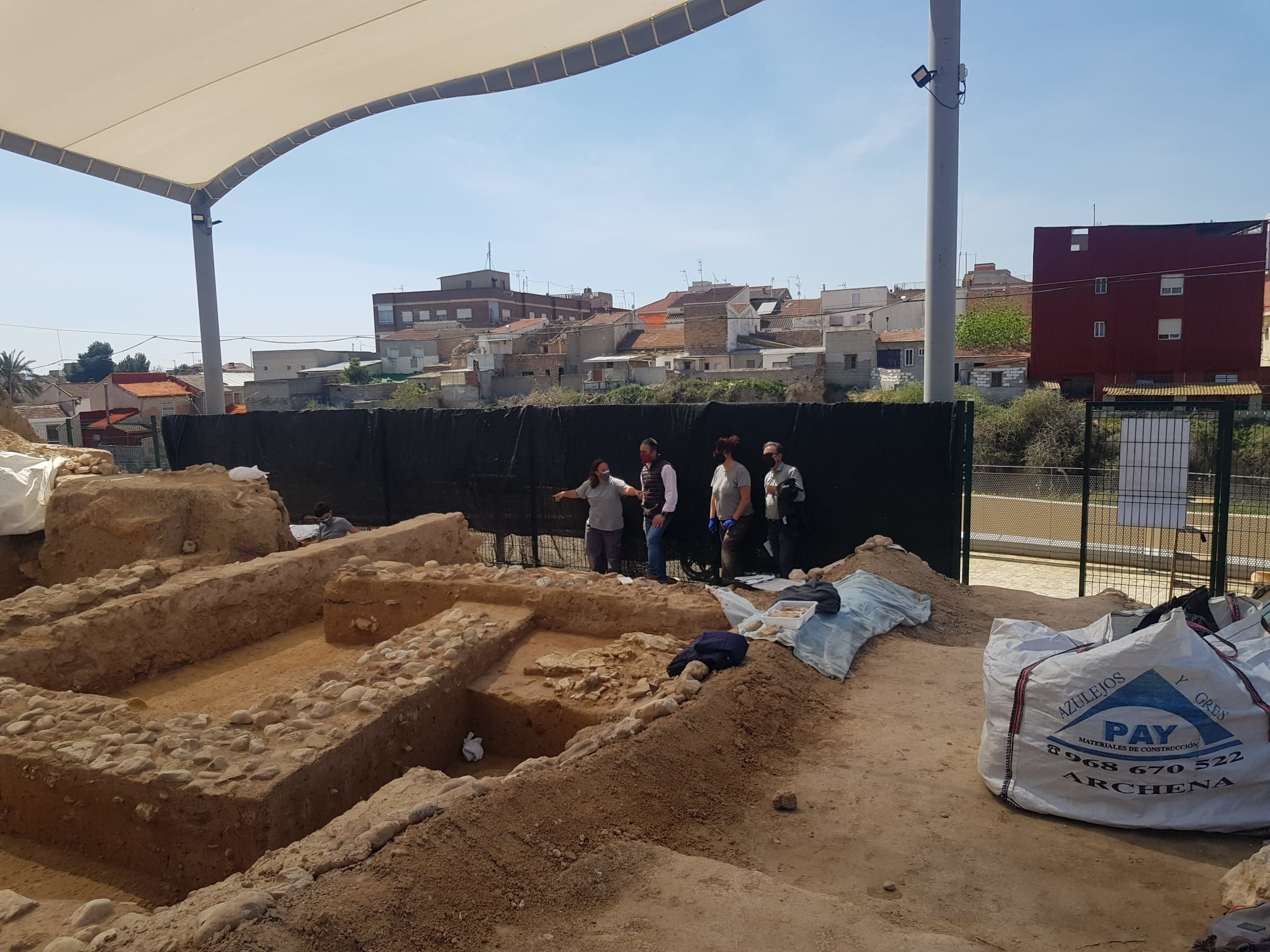 Visita del director general de Bienes Culturales, Rafael Gómez, y del alcalde de Librilla, Tomas Baño, al yacimiento romano localizado en el casco urbano