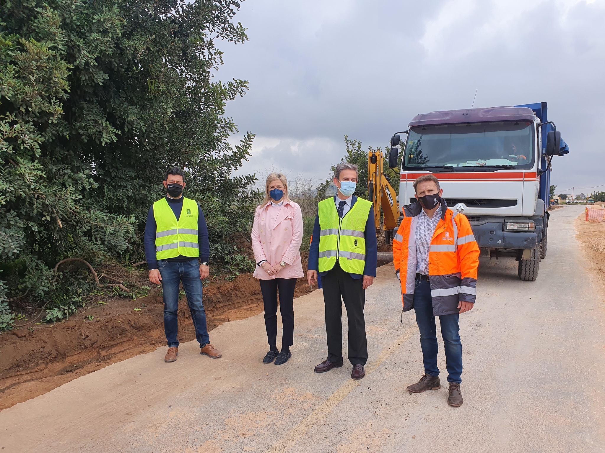 El director general de Carreteras, José Antonio Fernández Lladó, y el alcalde de Torre Pacheco, Antonio León, durante la visita a las obras de la carretera regional RM-F29 en la que la Comunidad Autónoma invertirá 980.000 euros para reparar los daños ocasionados por la dana en su firme y drenaje (1)
