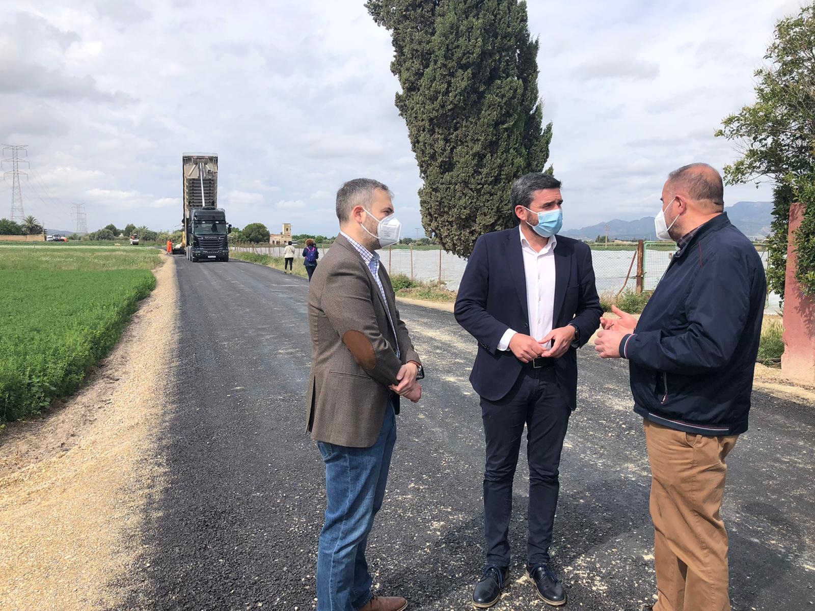 El consejero de Agua, Agricultura, Ganadería, Pesca y Medio Ambiente (c), Antonio Luengo, durante su visita a las obras que se realizan en dos caminos rurales del término municipal de Totana
