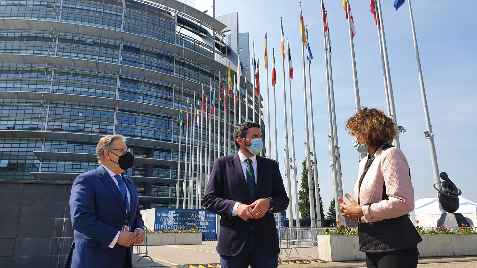 El consejero Antonio Luengo, junto a los eurodiputados Dolors Montserrat y Juan Ignacio Zoido, miembros de las comisiones de Medio Ambiente, Salud Pública y Seguridad Alimentaria, y de Agricultura y Desarrollo Rural del Parlamento Europeo