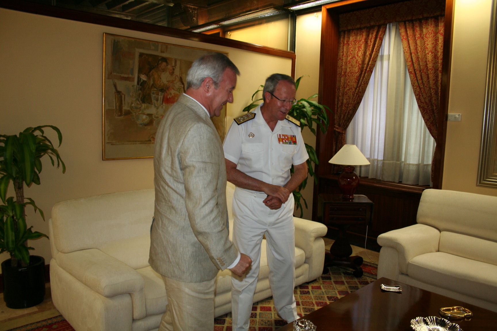 El presidente de la Comunidad, Ramón Luis Valcárcel, recibió al almirante de Acción Marítima, Juan Carlos Muñoz-Delgado, en su despedida de la Región tras ser nombrado almirante de la Flota.