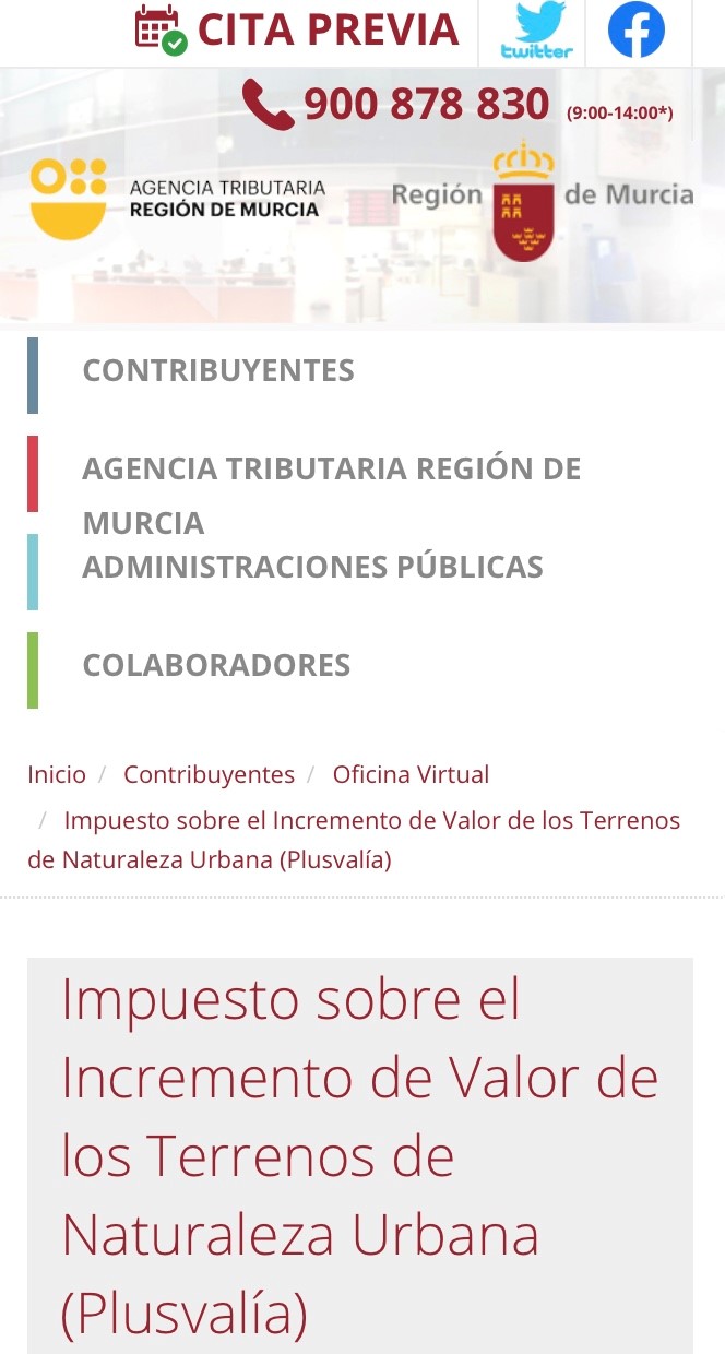 Imagen del apartado de la web de la Agencia Tributaria de la Región de Murcia dedicado a la plusvalía local
