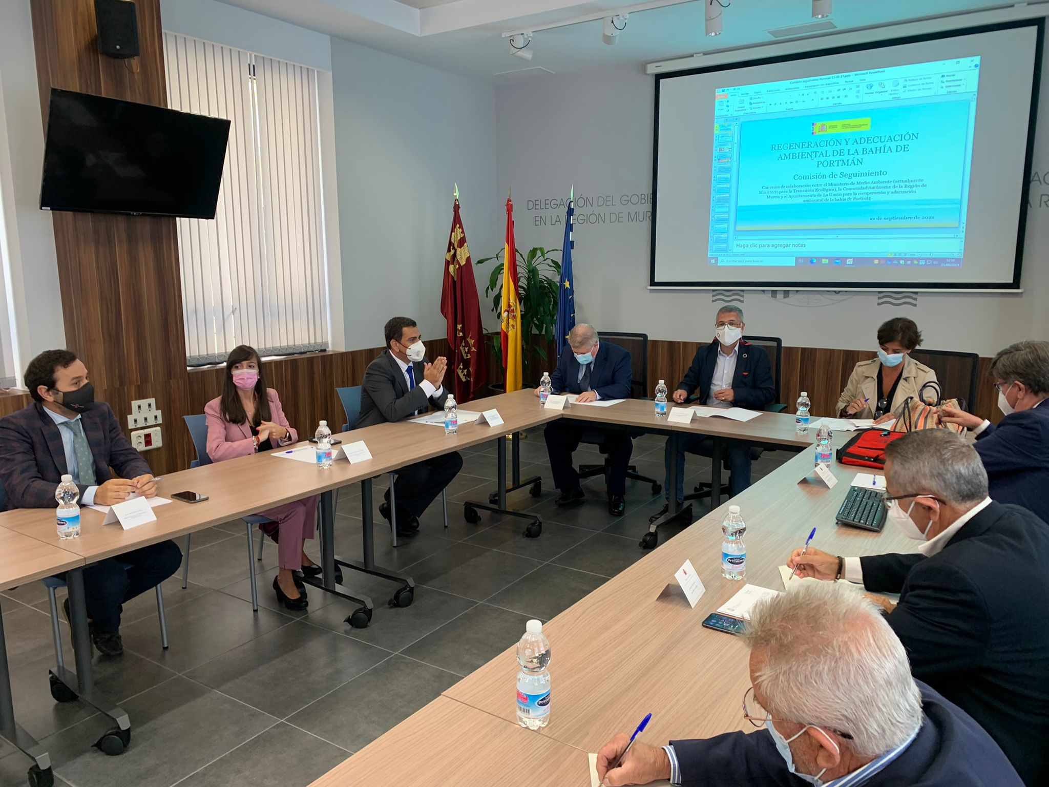 El consejero de Fomento e Infraestructuras, José Ramón Díez de Revenga, durante la reunión de la Comisión de Seguimiento del convenio de colaboración para la recuperación y adecuación ambiental de la Bahía de Portmán.