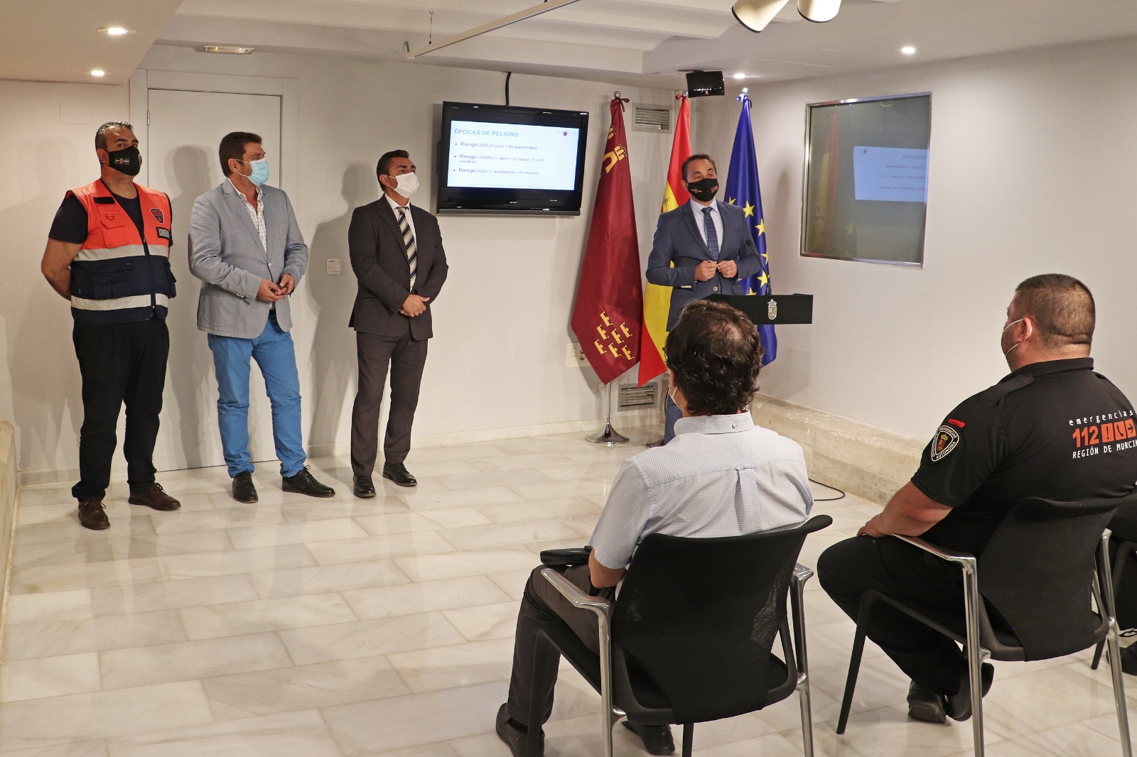 De izquierda a derecha, el gerente el Consorcio de Extinción de Incendios y Salvamento, Javier Gil, el director general del Medio Natural, Fulgencio Perona, el director general de Seguridad Ciudadana y Emergencias, Antonio Luis Mula, y el consejero de Transparencia, Participación y Administración Pública, Antonio Sánchez Lorente.