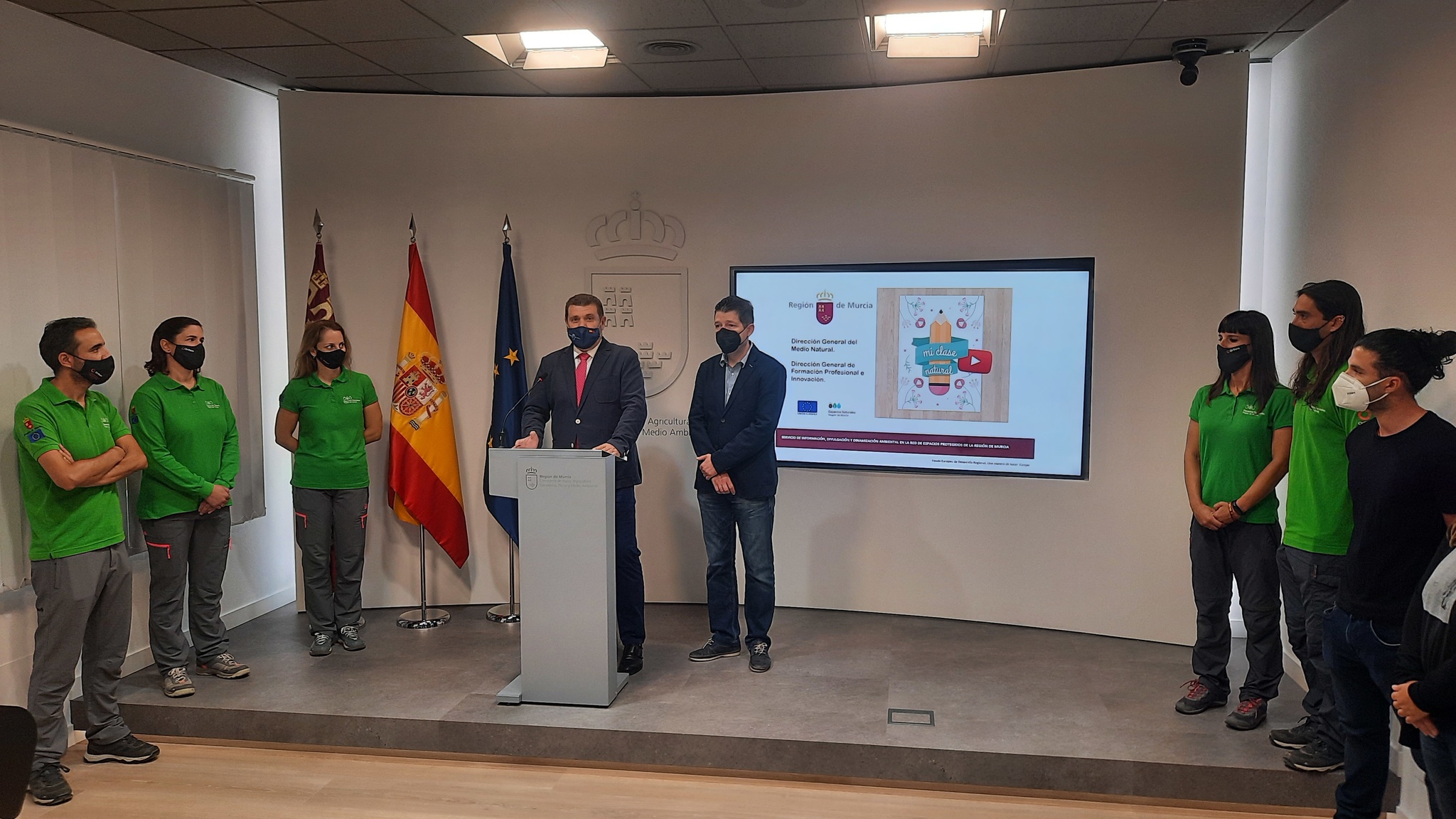 El director general del Medio Natural, Fulgencio Perona, durante la presentación de la colección de vídeos educativos 'Mi clase natural', sobre los espacios naturales de la Región