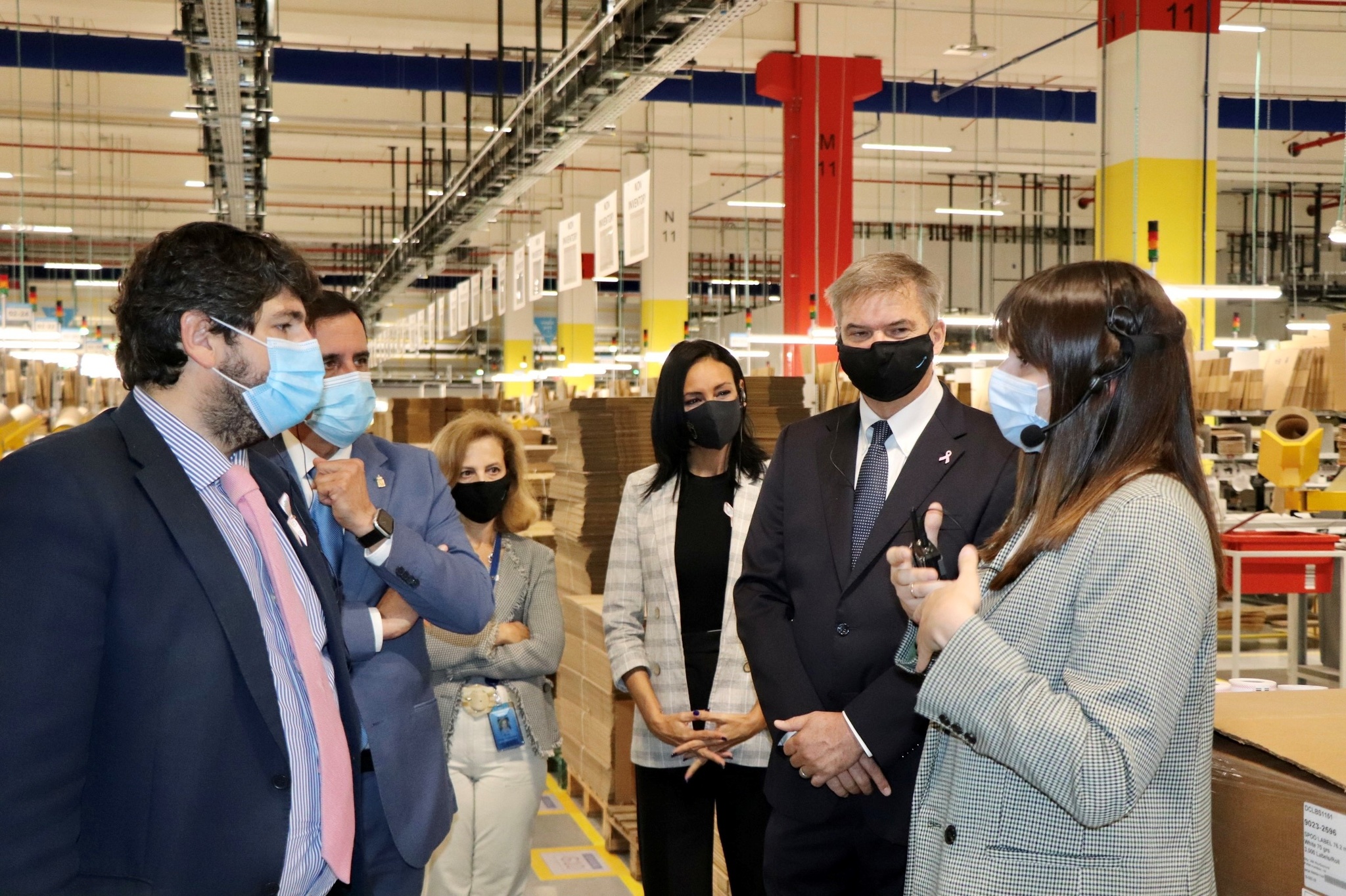 López Miras, durante la inauguración del nuevo centro logístico robotizado de Amazon