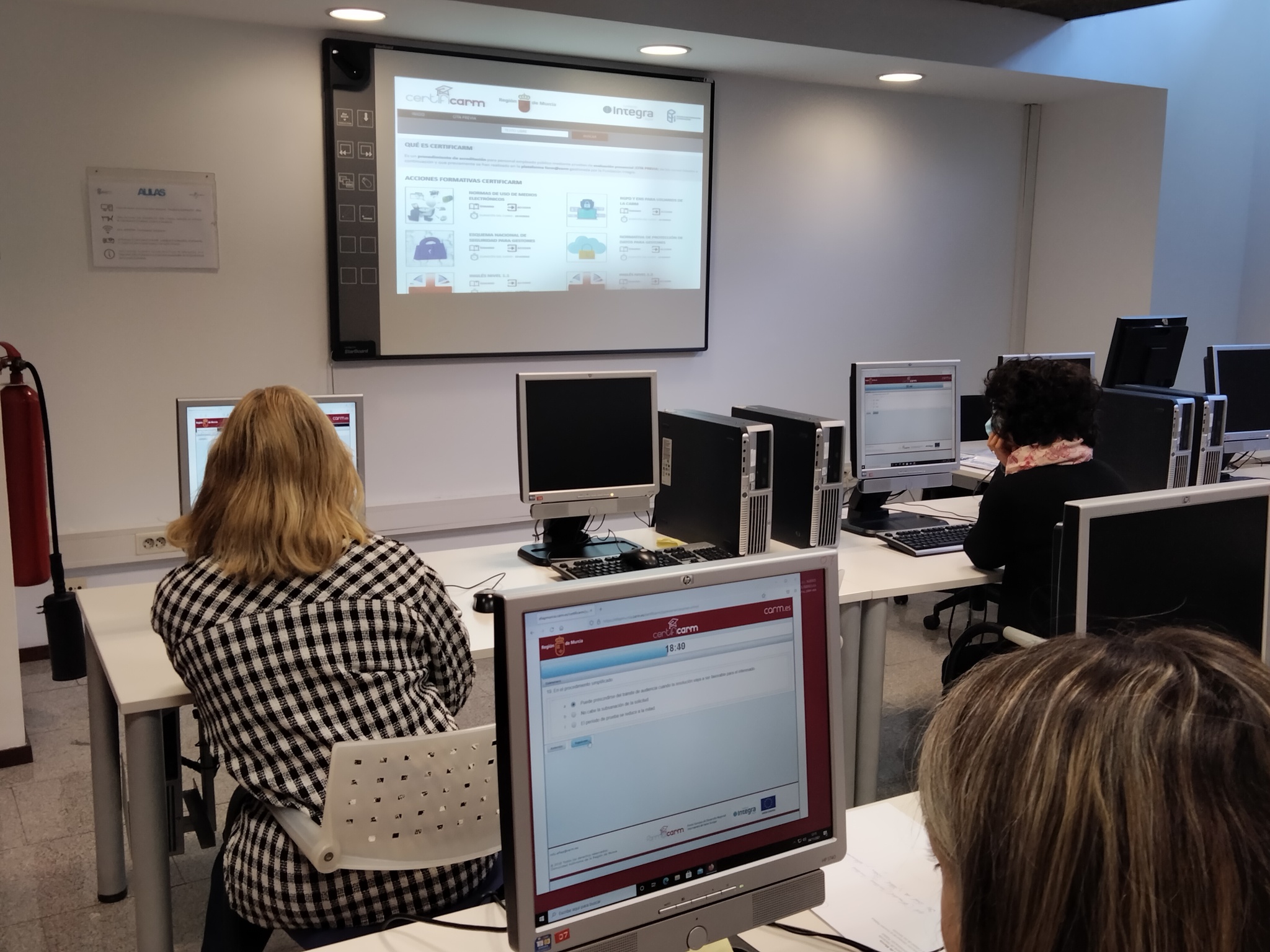 Imagen de empleados públicos realizando las pruebas de evaluación presencial del programa de autoformación Certificarm