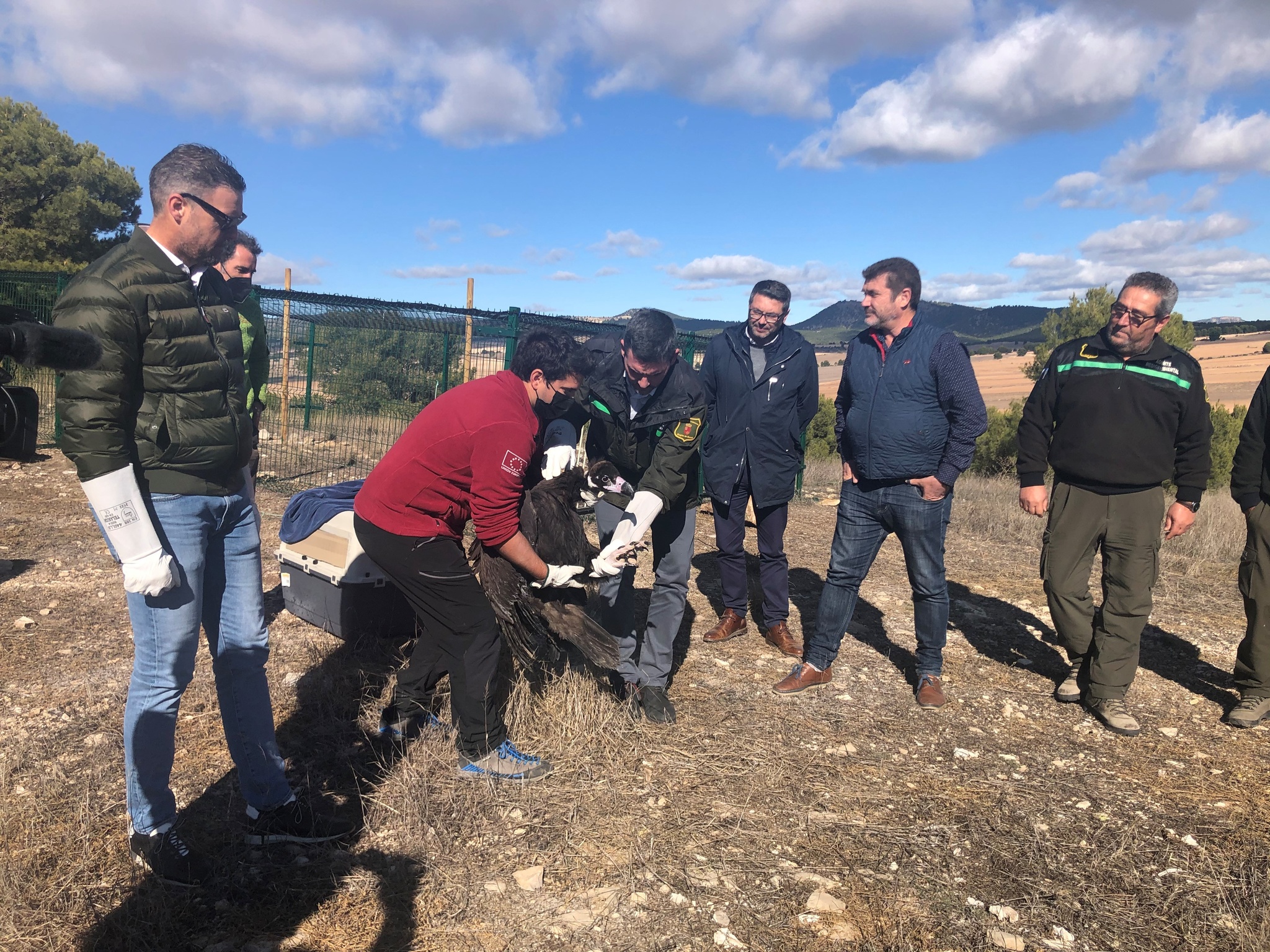 El consejero Antonio Luengo, durante la liberación del ejemplar de buitre negro en el muladar de la sierra de Mojantes