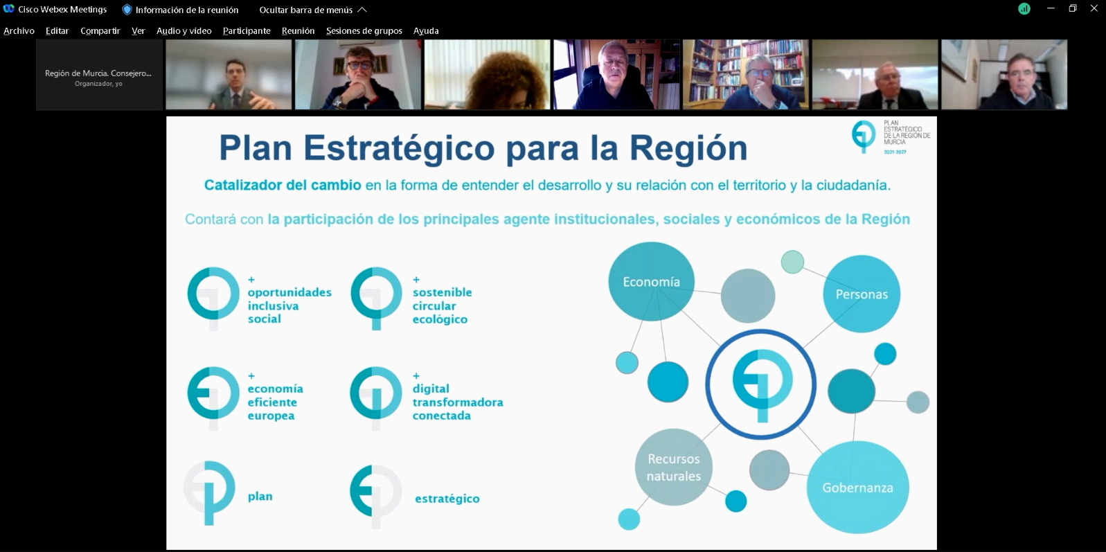 El consejero de Economía, Hacienda y Administración Digital, Luis Alberto Marín, presentó hoy por videoconferencia los 12 ejes iniciales a varios de los agentes sociales y económicos que participan en la elaboración del Plan Estratégico 2021-2027