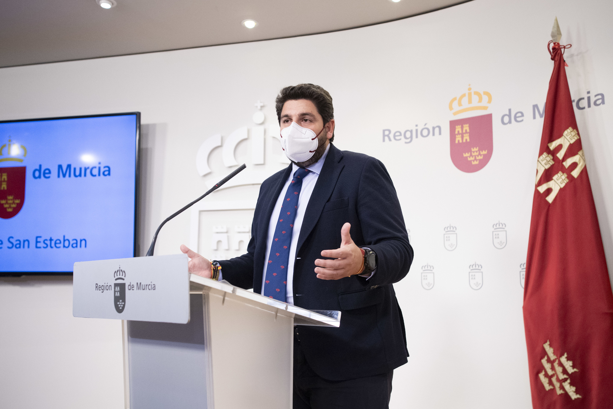 Rueda de prensa del presidente de la Comunidad, Fernando López Miras, tras participar en la reunión telemática con el Gobierno central.